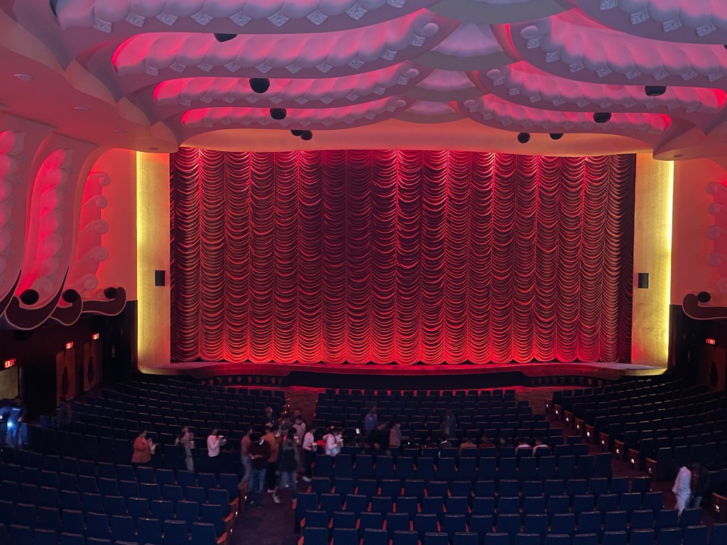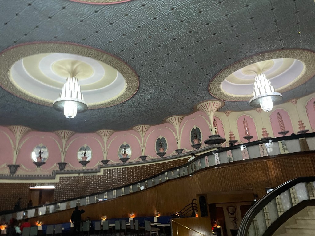 3. La decoración muy años 70. Puede que sea la original. No sé si me entendéis. Los suelos con alfombras y en la zona premium unas salitas con sofás y un pequeño bar con sándwiches y bolleria (nivel India). Esperas en la salita y el acomodador te lleva a tu sitio.