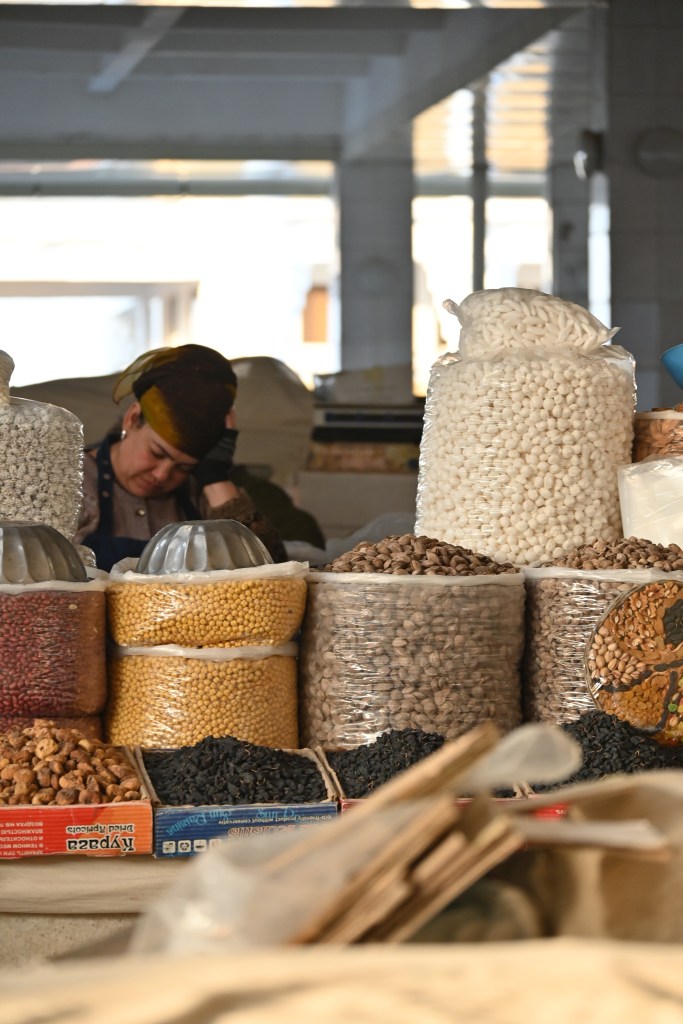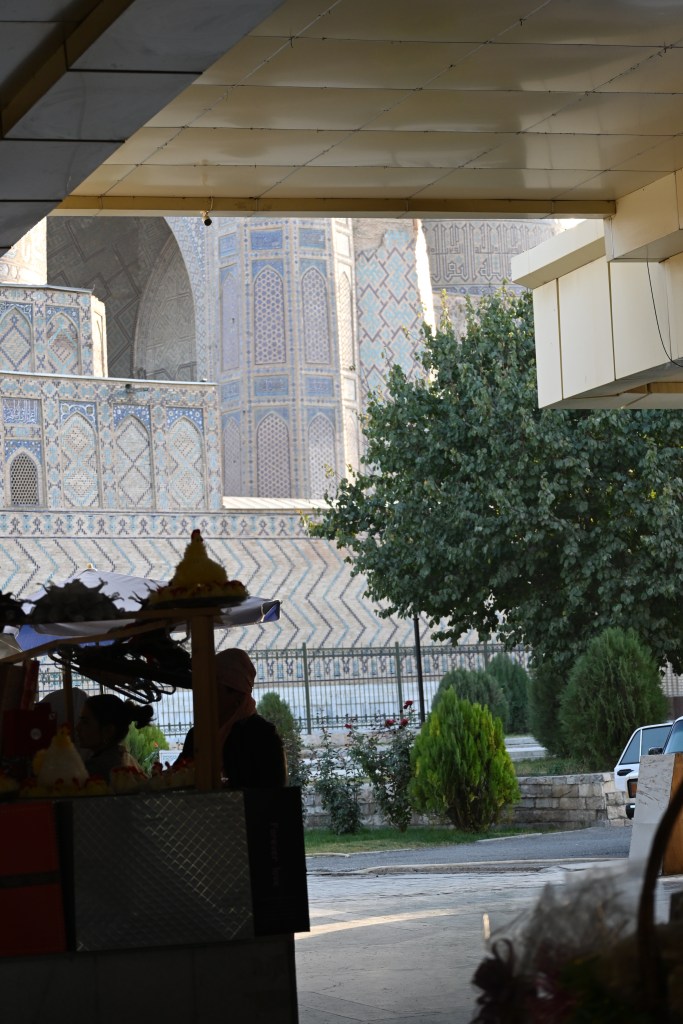 Antes del atardecer (atención porque el paseo del mercado a la plaza puede ser de casi media hora, tendrás que correr para llegar) se puede ir al mercado más antiguo de Samarkanda, el Siyob. Fantasía de especias, dulces, frutas…precioso. Siyob está situado junto a la mezquita Bibi Khanum.
