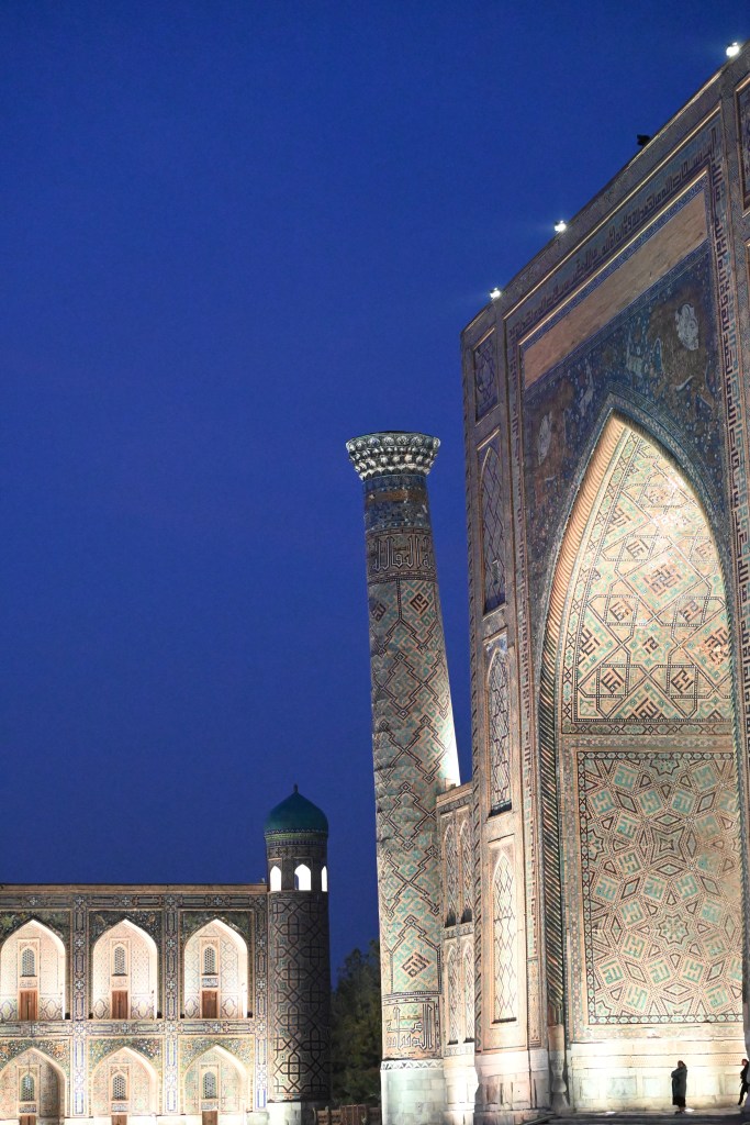 El top del top es la plaza del Registan que está formada por 3 grandes madrazas o madrasas (universidades medievales) que han sido incluidas en la Lista del Patrimonio Mundial de la UNESCO en 2001. El centro de este conjunto, que se considera una de las estructuras más grandes del mundo islámico, es la madrasa Tilla-Kari, a su izquierda está la madrasa de Ulugh Beg, y a la derecha está la de Sher-Dor.