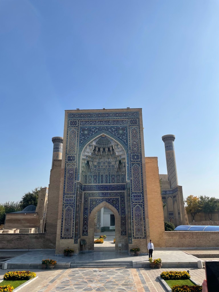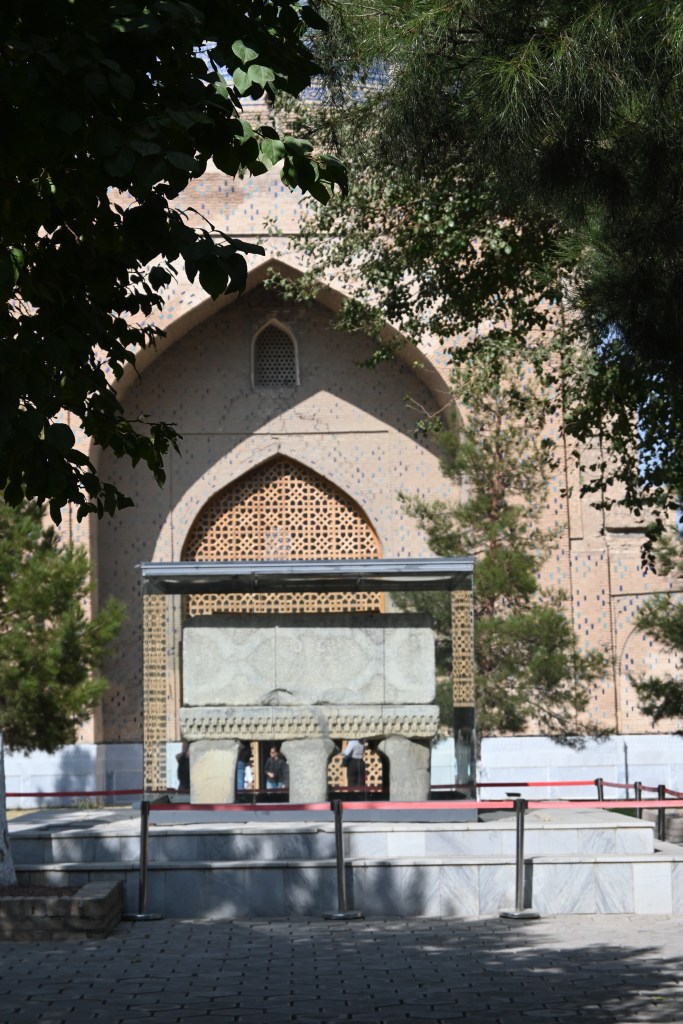 Este mausoleo lo comenzó a construir el Tamerlán para su nieto fallecido, aunque lo acabó su otro nieto Ulugh Beg.