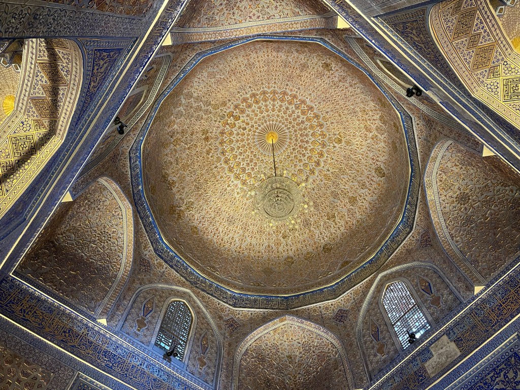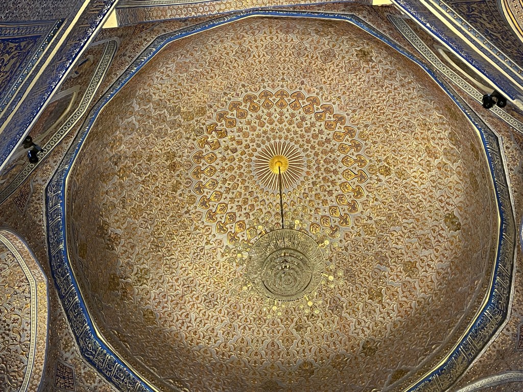 La madrasa Tilla Kari hizo tanto la función de madrasa como de mezquita. Tiene pintura de oro en las paredes. Y es increíble en su interior.