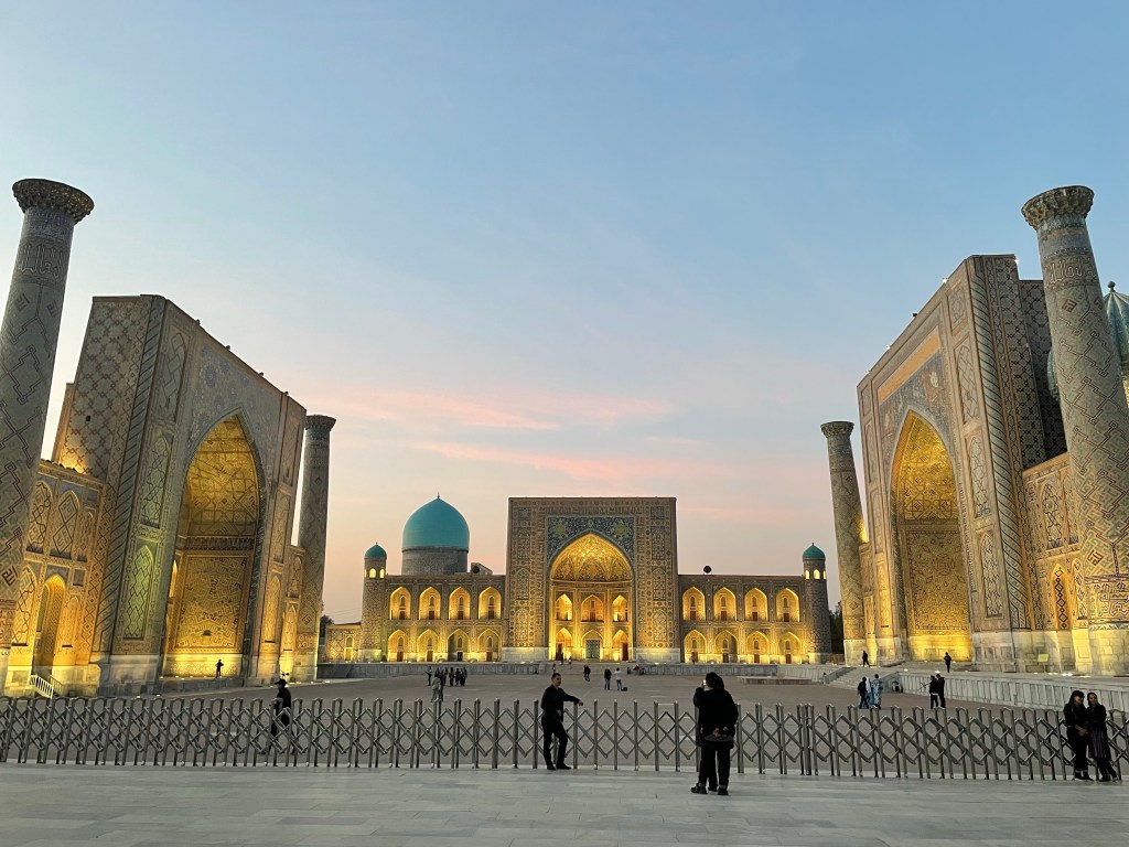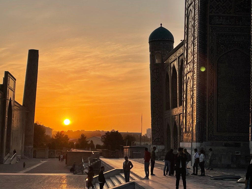 Si: apresurarse por llegar a la plaza antes de la puesta de Sol. La luz increíble. Los atardeceres en Uzbekistán deberían ser maravilla natural de la UNESCO 🤣