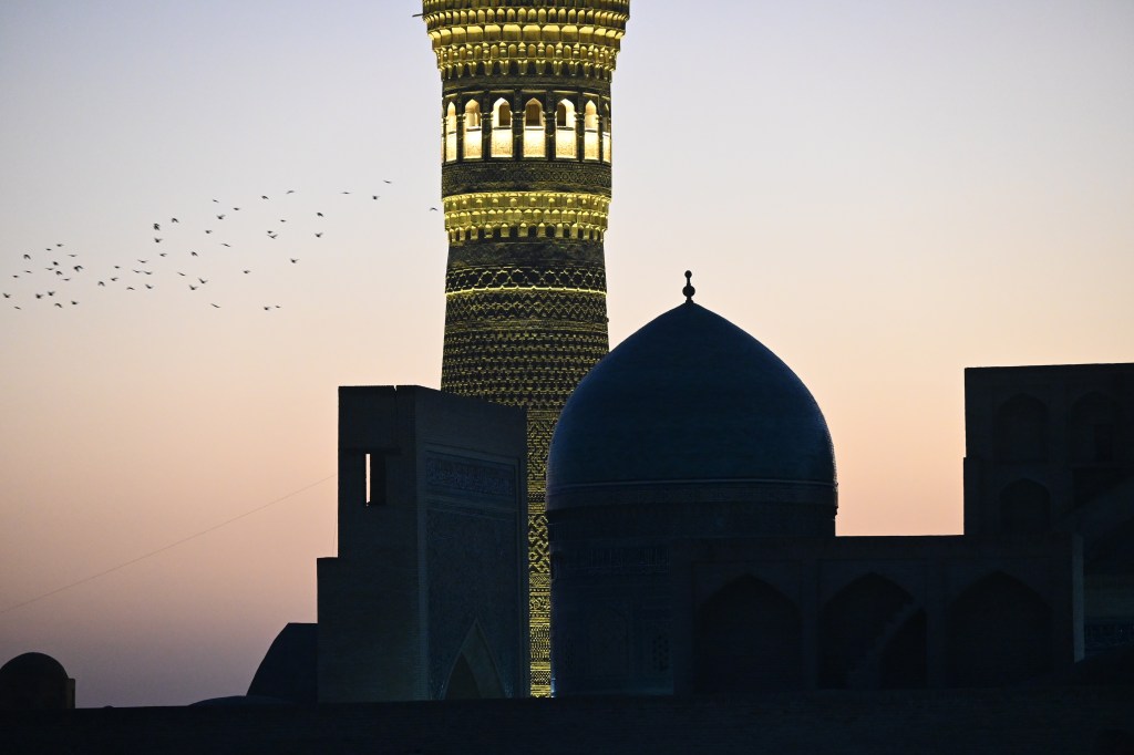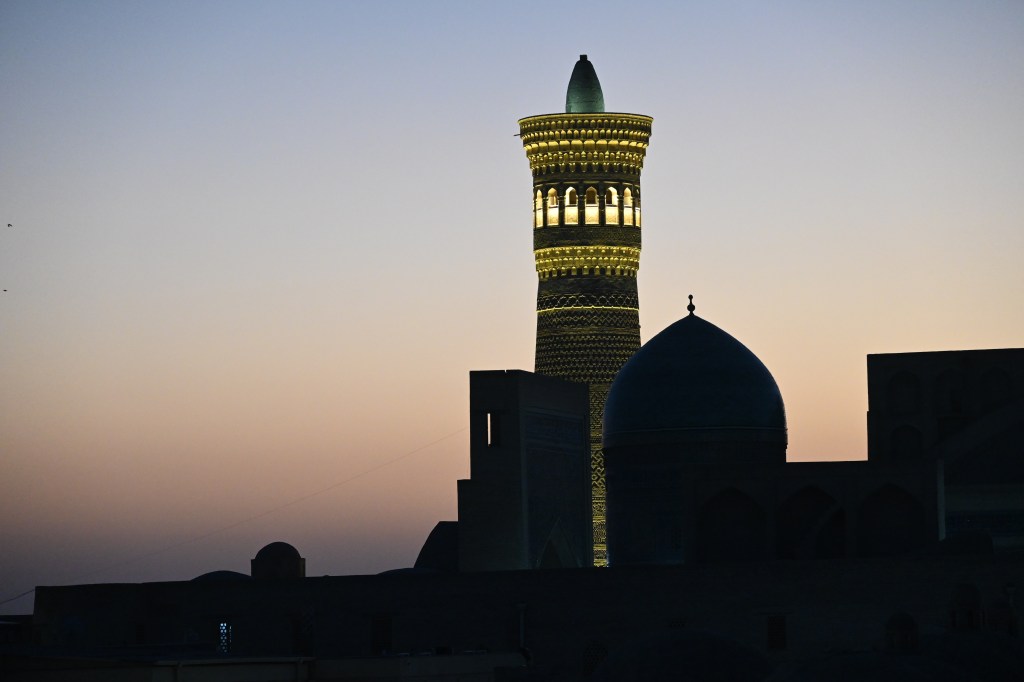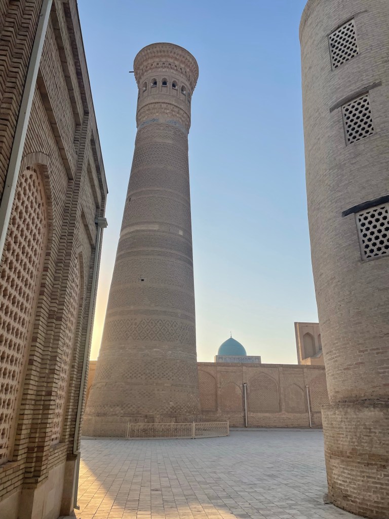 A unos 15 minutos andando de la plaza se encuentra la estrella del lugar: el minarete de Kalon. En 1220, en plena expansión del imperio mongol, las huestes de Gengis Khan arrasaron Bukhara, de aquel desastre solo se salvó este minarete, un alminar de 47 metros de altura levantado en 1127. Kalon hacía también las funciones de faro para guiar con el fuego que se encendía en su cúpula a las caravanas del desierto cuando les sorprendía la noche o una tormenta de arena.