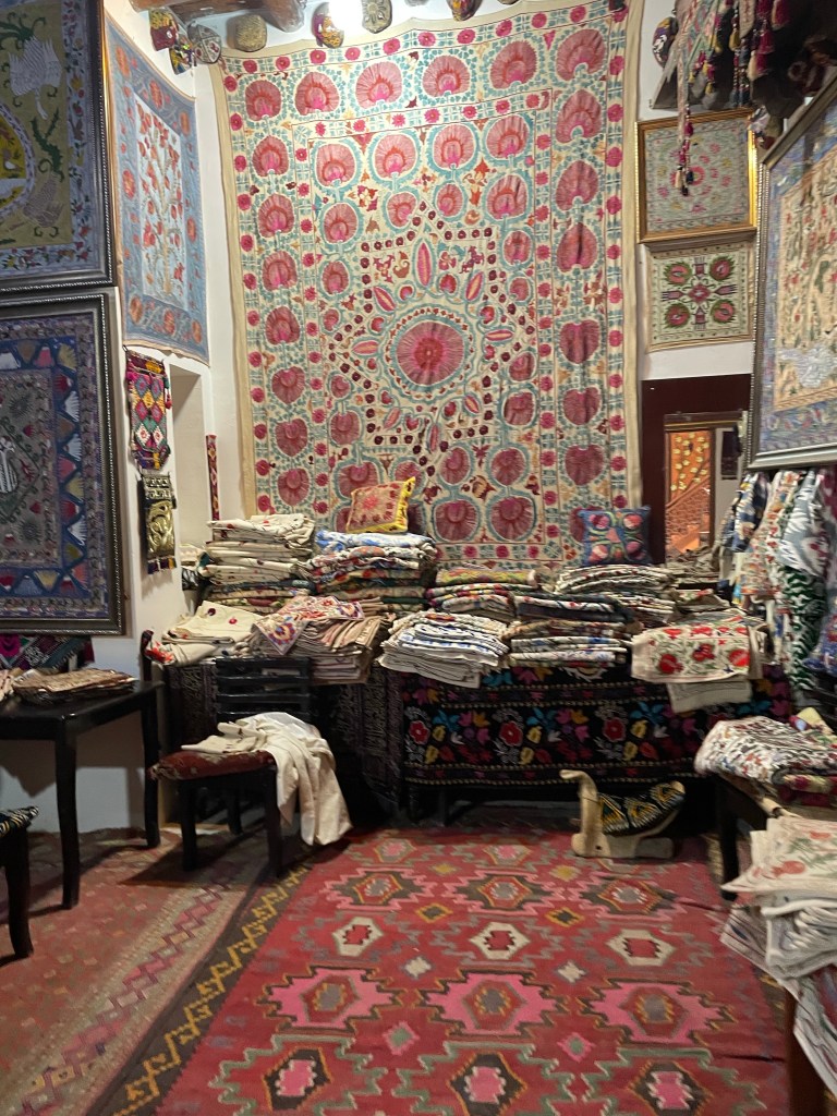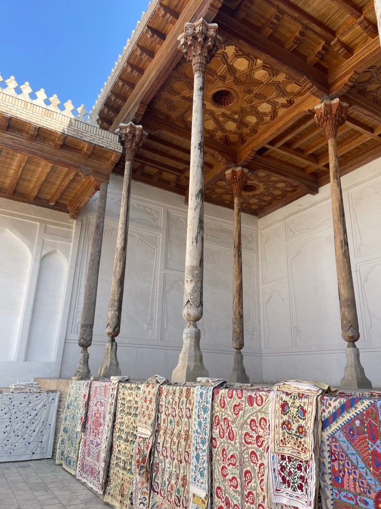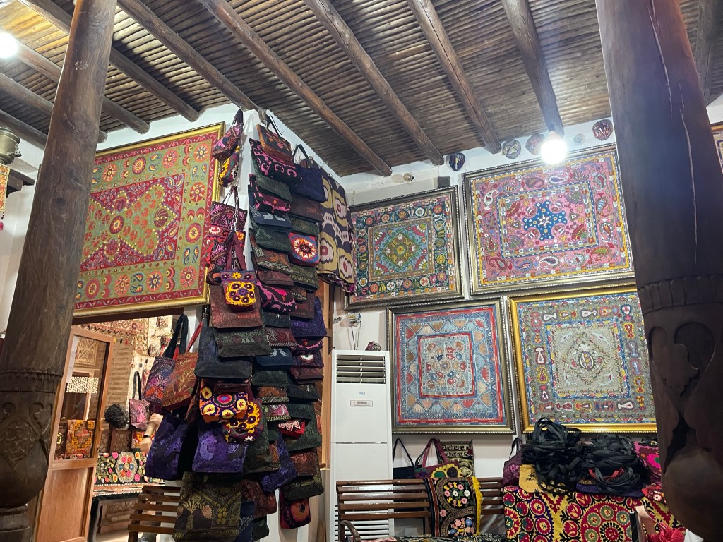 Entorno a Lyabi-Huz y repartidos por todo el shahristan, el centro monumental, podrás ver y visitar otra de las construcciones características de la ciudad: los bazares. Bazares que se formaron de la unión de talleres de los artesanos (verás que están agrupados por gremios) y en los que puedes comprar alfombras, especias, miniaturas, artículos en madera, telas, porcelanas, pinturas… hay puestos en el exterior rodeando el estanque y puestos bajo cubierta, bajo las arcadas, cúpulas y bóvedas de los antiguos caravansérais. Están diseñados para procurar sombra y mitigar el calor del desierto así que Nice!