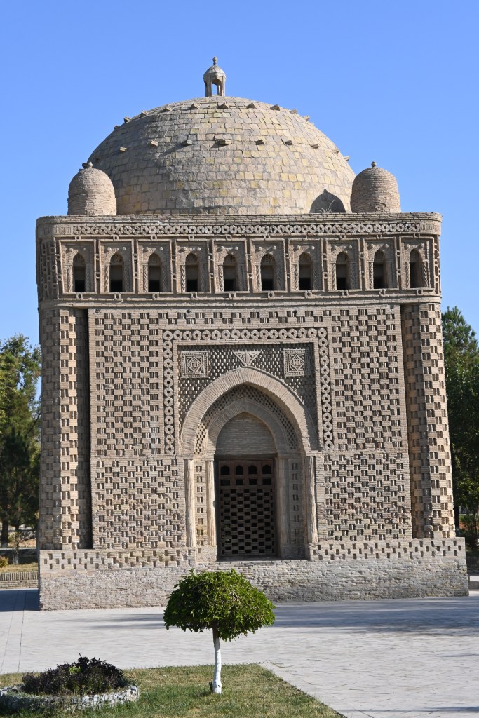 Al otro lado del parque de los Samánidas, uno de los monumentos más antiguos de Bujara – el mausoleo de los Samánidas. Se cree que fue construido a finales del siglo X por Ismail Samaní – fundador de la dinastía de los Samánidas (la dinastía gobernó desde 875 hasta 999). Hay datos que indican que él lo construyó para su padre Ahmad ibn Asad. Pero más tarde el mausoleo se convierte en el sepulcro familiar, en él está enterrado el mismo Ismail Samani.