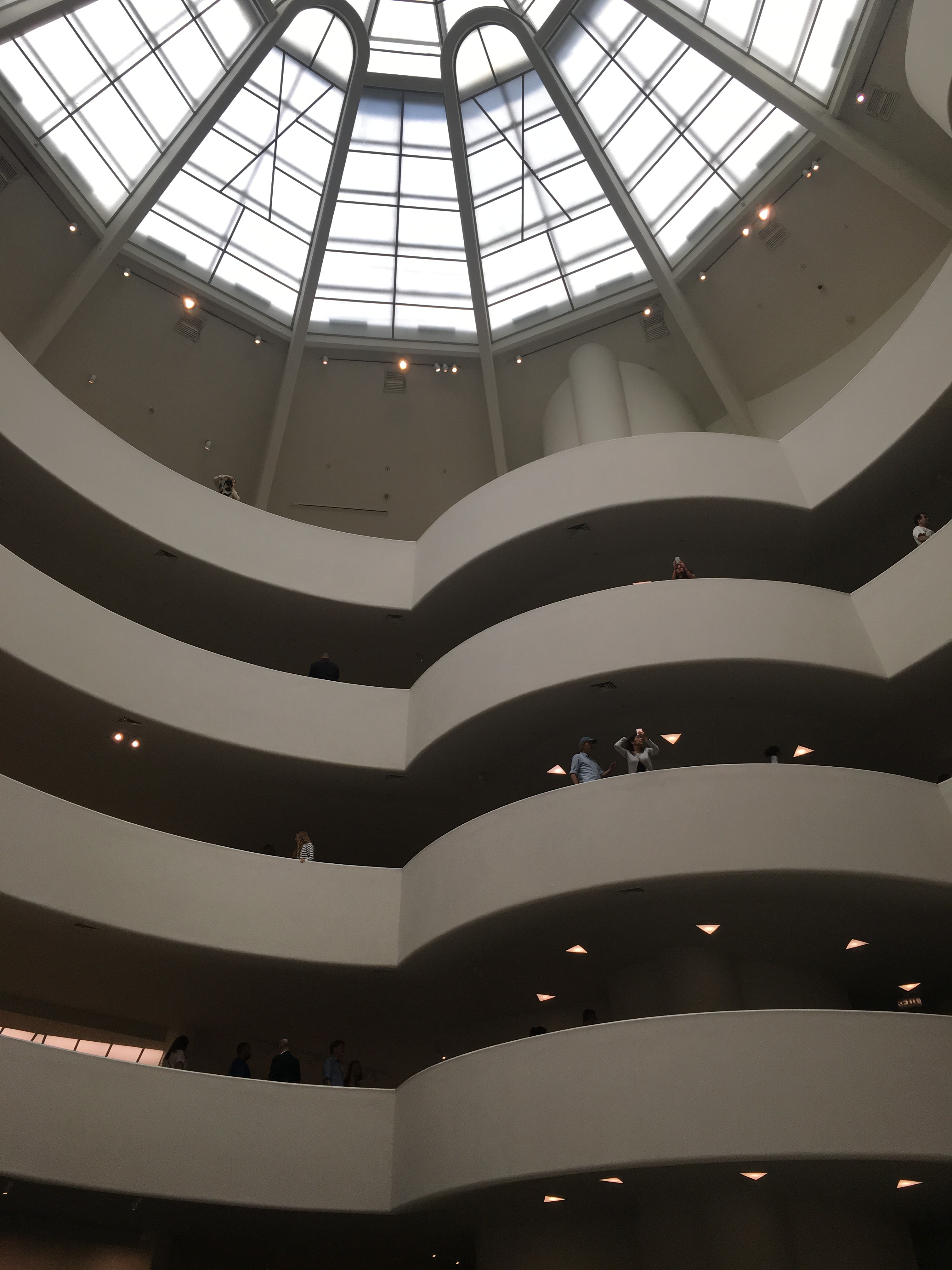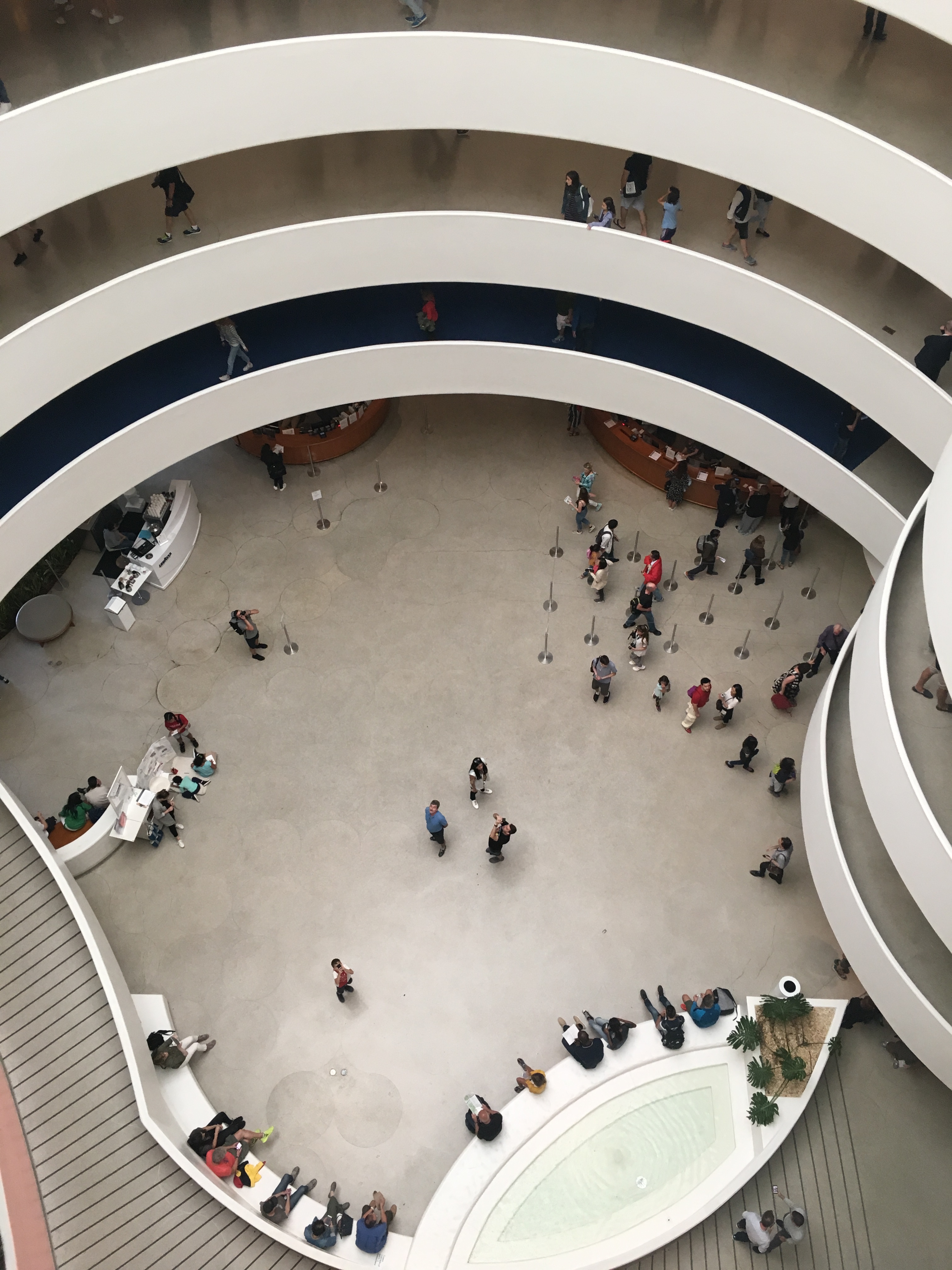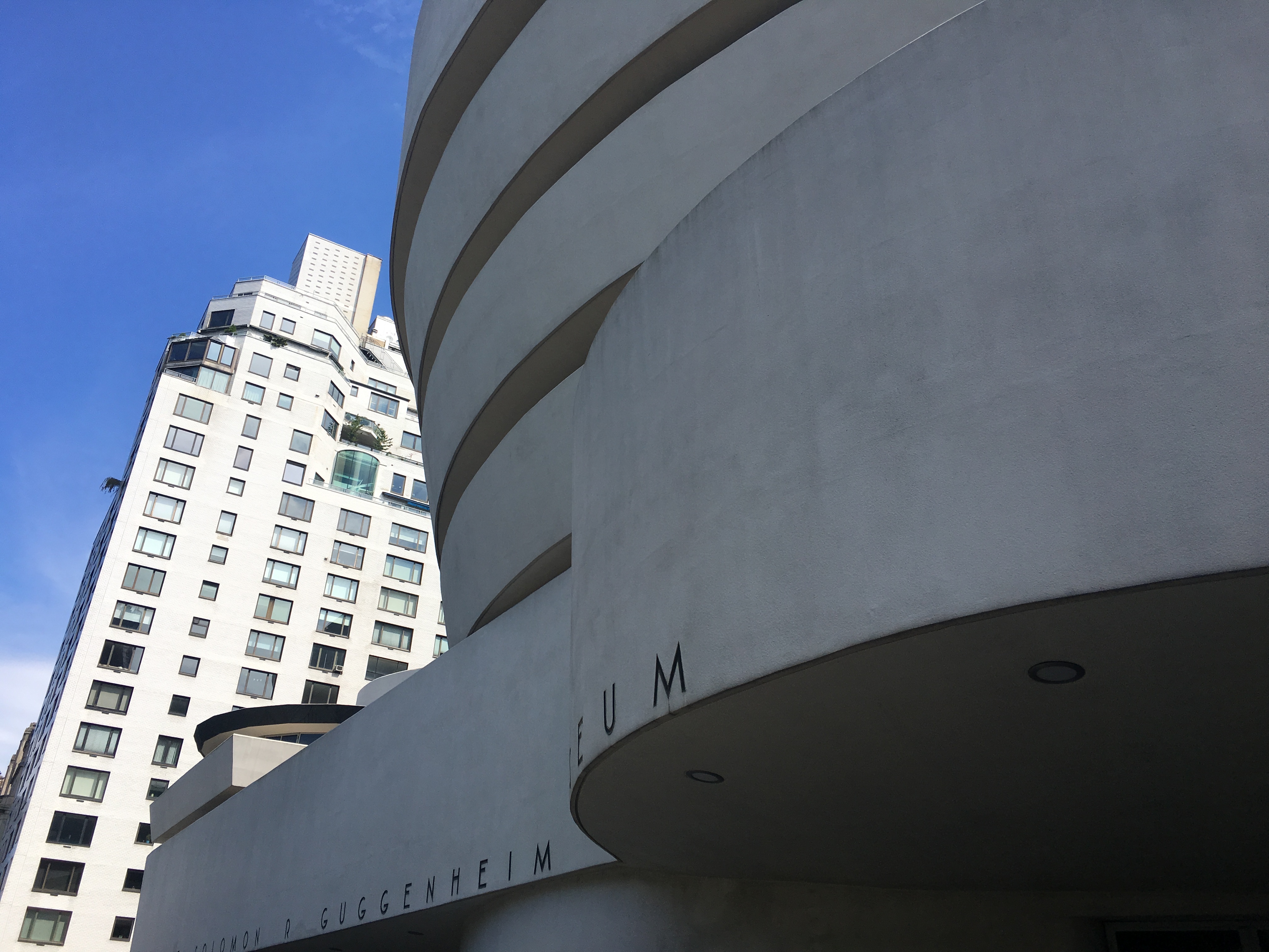 Espectacular edificio cilíndrico diseñado por Frank Lloyd Wright, situado en el Upper Est Side, y que cumplió en 2019, 70 años de existencia (se inauguró el 21/10/1959) gestionado por la Fundación Solomon R.Guggenheim