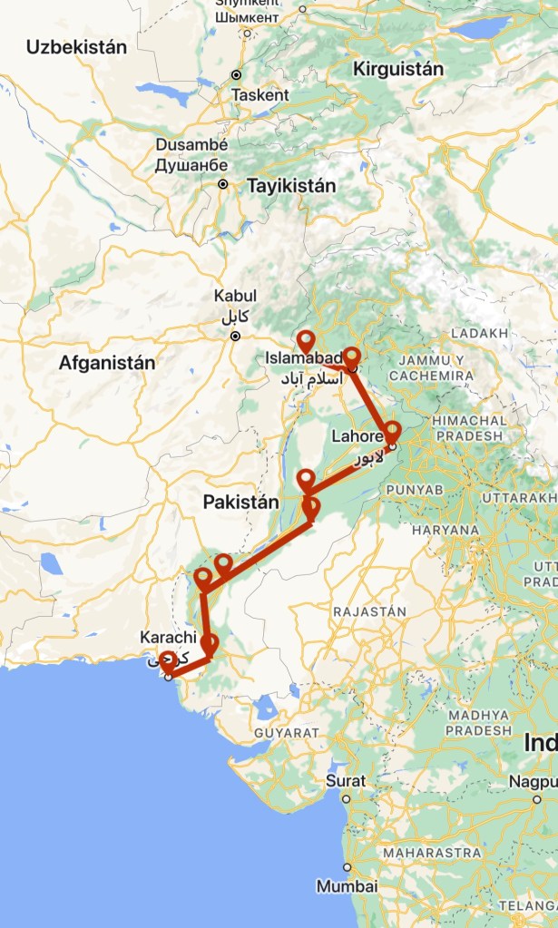 Itinerario: entramos por Peshawar en la frontera con Afganistán y salimos por Karachi al sur. En medio seguimos el curso del rio indo.. en esta primera parte únicamente hablaré de Peshawar ya que se me alarga la entrada.