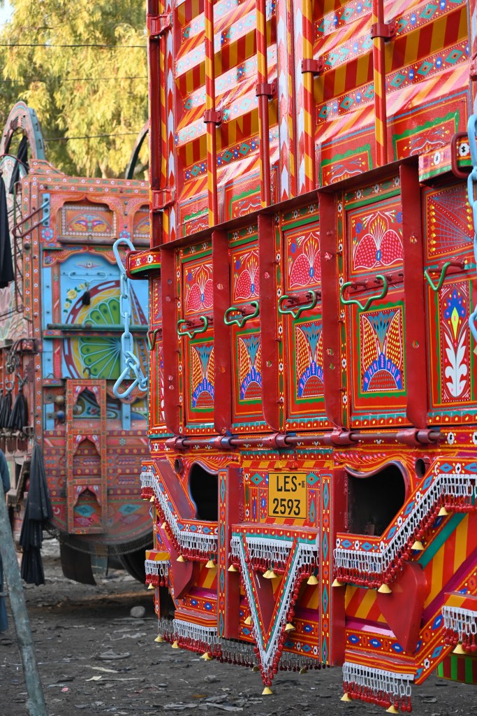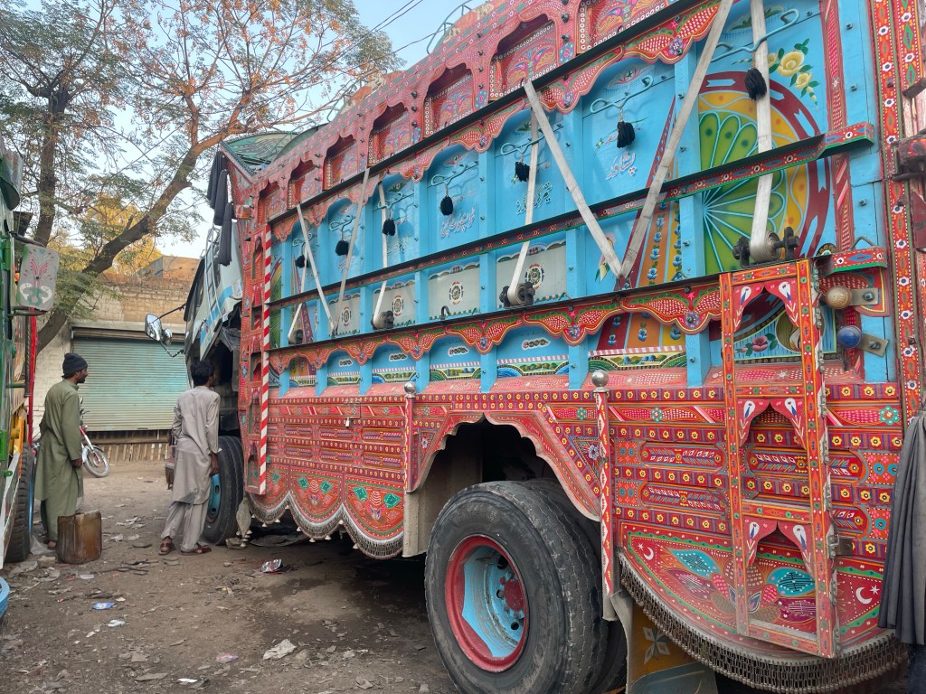 4. La visita a un “taller” donde diseñaban y fabricaban los típicos camiones pakistaníes. El arte decorativo de camiones es una forma popular de decoración regional típica del sur de Asia, con camiones decorados con elaborados motivos florales, islámicos, caligrafía, tallas de madera, puertas de la cabina de madera tallada, animales, retratos, espejos…