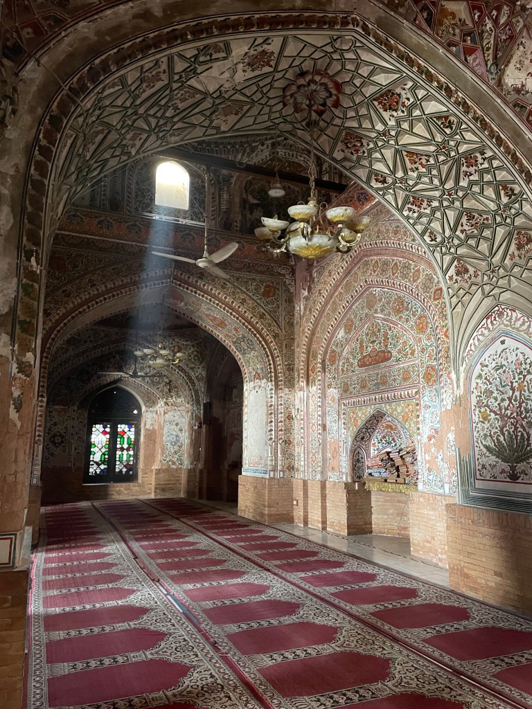 1) la Mezquita Mahabat Khan construida en 1630 y lleva el nombre del gobernador mogol de Peshawar, Nawab Mahabat Khan bin Ali Mardan Khan. La fachada de mármol blanco de la mezquita se considera uno de los lugares más emblemáticos de Peshawar.