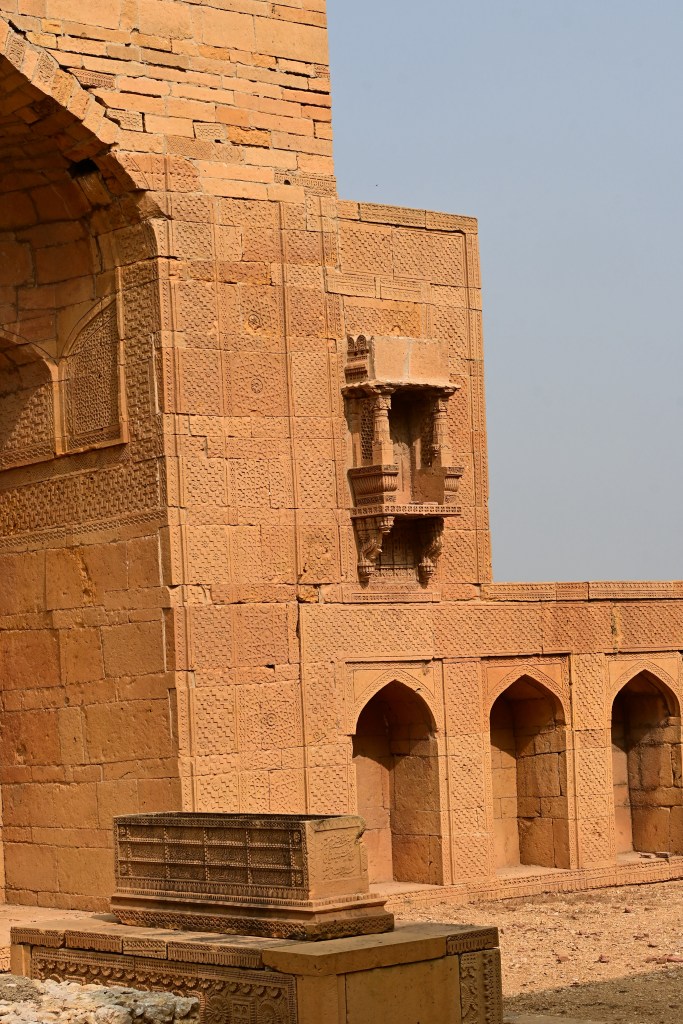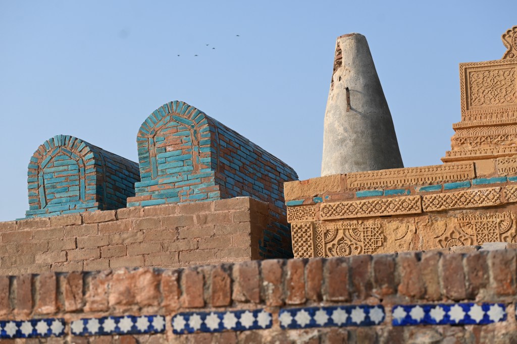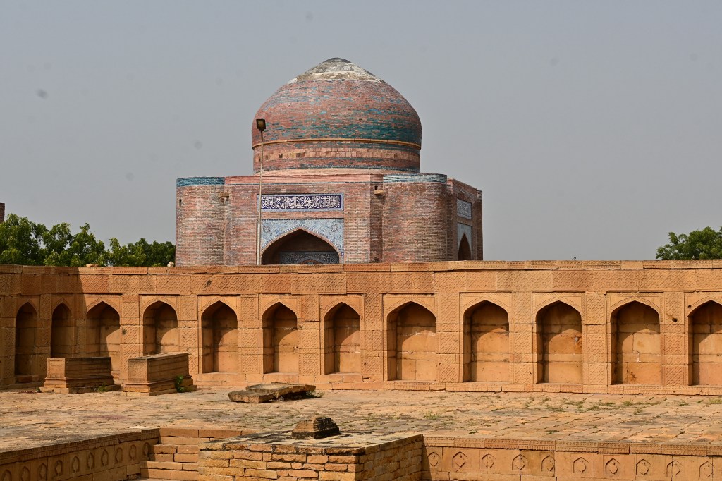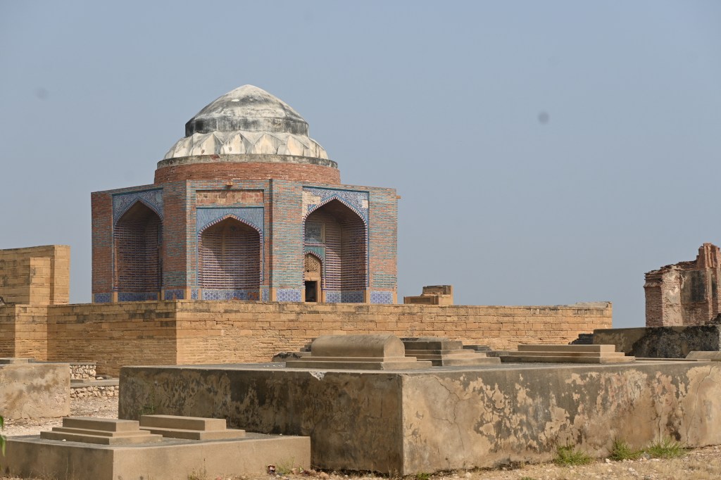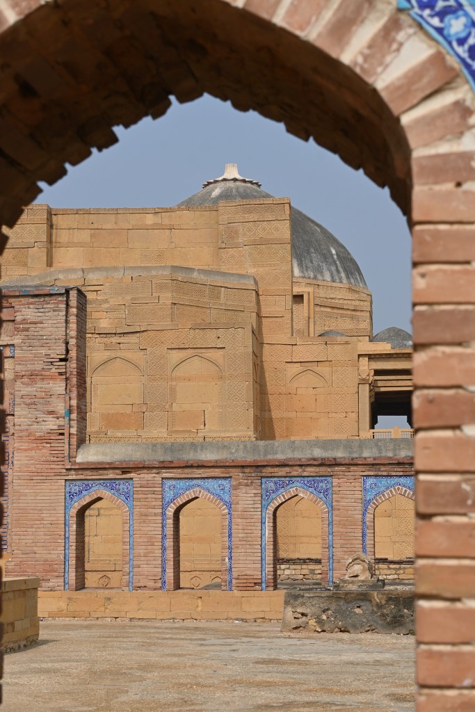 Continuamos la ruta y en la colina de Makli visitamos una antigua necrópolis que contiene miles de tumbas. Multitud de monumentos funerarios de los Siglos XIV al XVIII esculpidos en piedra arenisca con motivos florales y geométricos y revestidos de azulejos, entre los que destaca el Mausoleo de Mirza Jani Beg, último soberano de la dinastía Tarkhan. La necrópolis fue inscrita en la lista de patrimonio de la Humanidad en 1981.