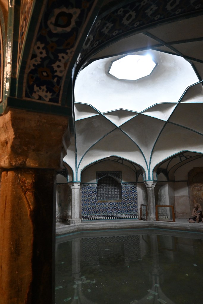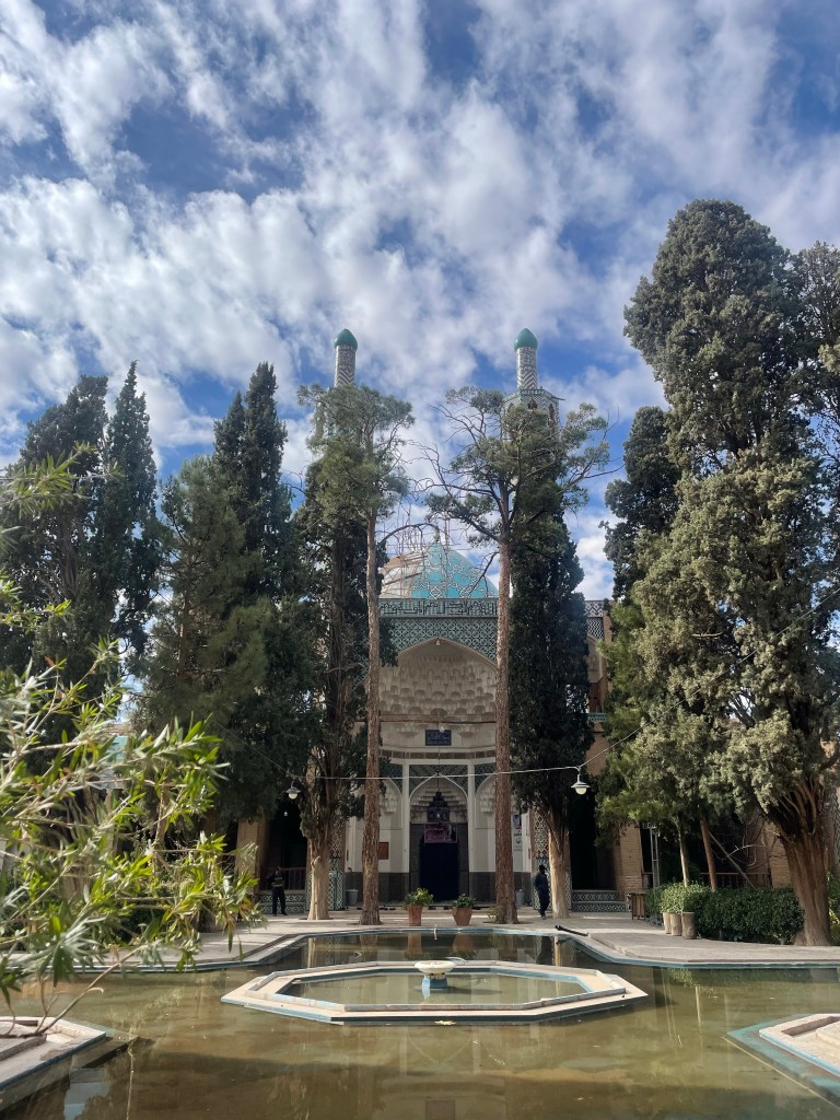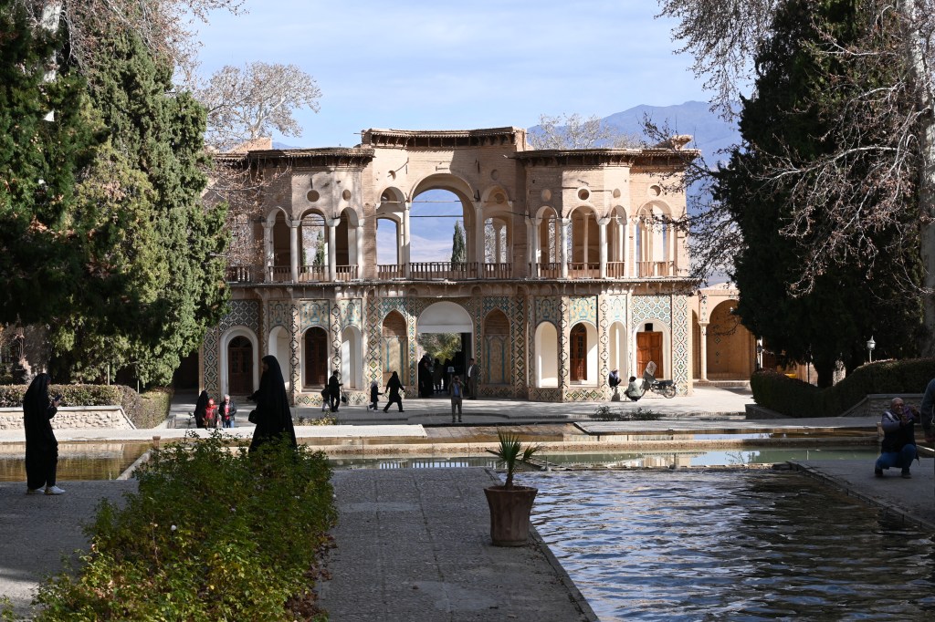 Esto en primavera tiene que ser espectacular, ahora en invierno se veía poco verde en los jardines. Evidentemente es un oasis. El lugar está lleno de locales (entiendo que es turismo local) haciéndose fotos y recorriendo el lugar, muchas mujeres todas con chador.