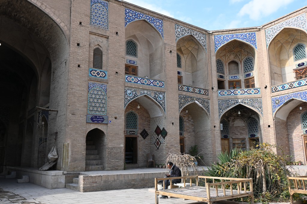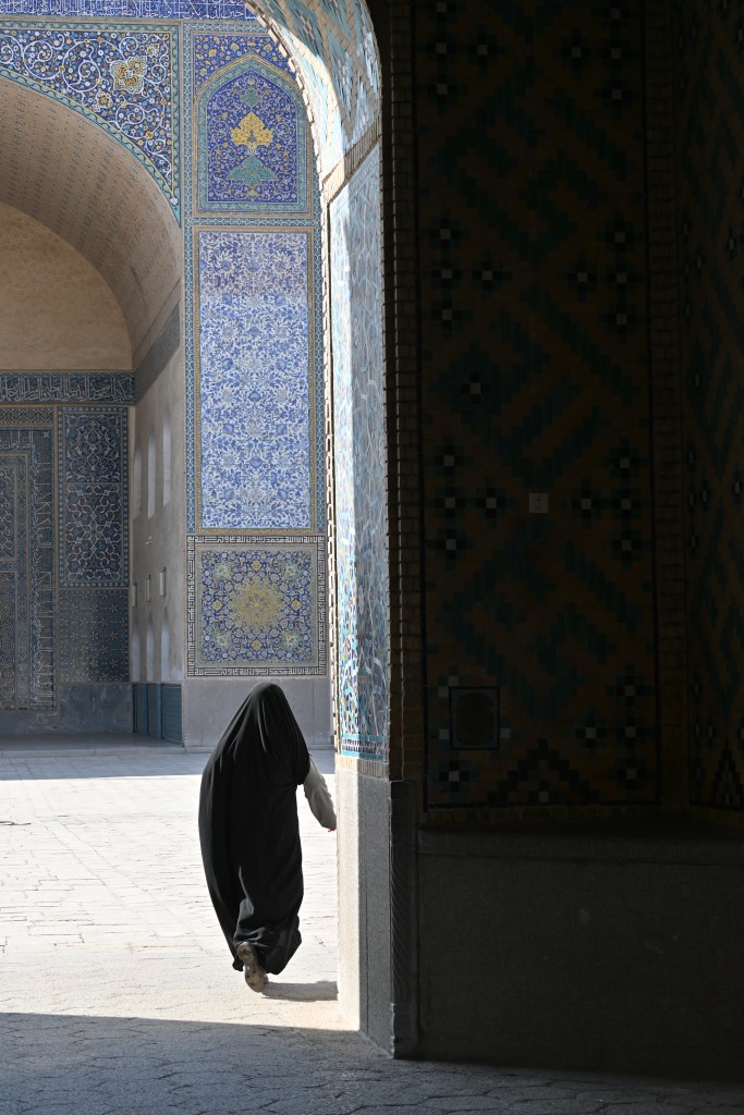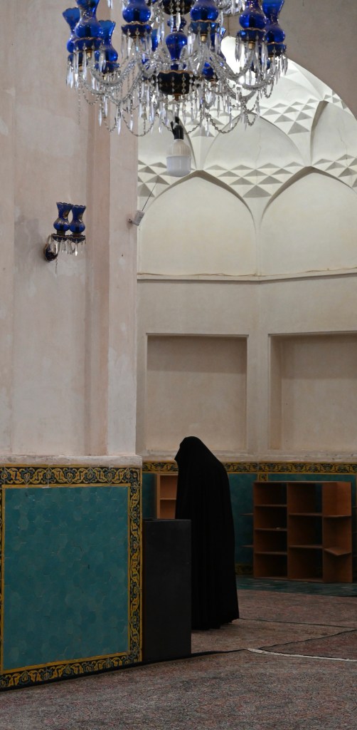 Dentro varias mujeres con chador negro rezan en diferentes salas. Puede parecer que en Irán son más estrictos que en Pakistán por ejemplo, pero, en Pakistán, no vimos ninguna mujer en las mezquitas y aquí sin embargo había muchas. Todas con chador claro. (Te obligaban a ponértelo en la entrada, te dejaban uno)