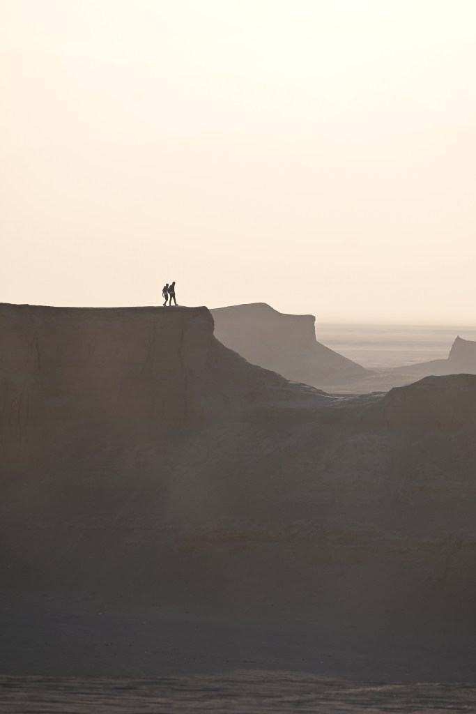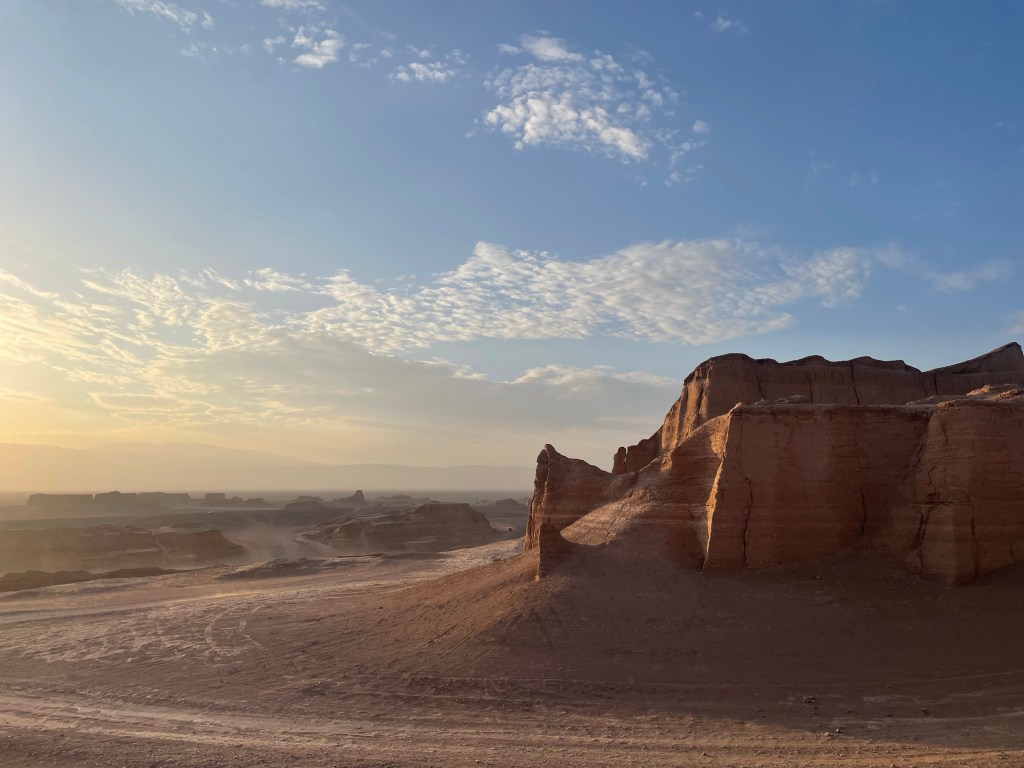 En las fotografías la zona de los Kaluts, el nombre local que se utiliza para denomimar a los yardang. Un yardang es una formación rocosa moldeada de forma característica por la erosión causada por el viento.