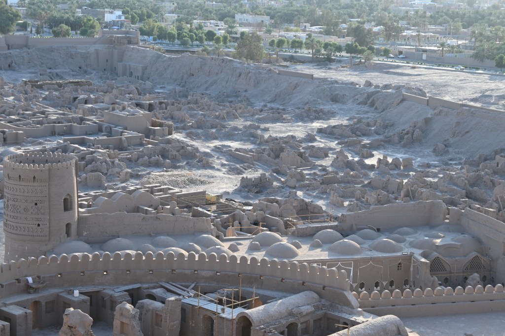 Esta enorme ciudadela permaneció en uso hasta 1850 d.C. La ciudadela real está situada en el centro de la ciudad fortaleza, en el punto con la vista más amplia para la seguridad, contiene los barrios del gobernador y la zona residencial fortificada, fuera el bazar, los artesanos, alrededor de 400 casas, escuela, gimnasio y baños públicos…Arg-e Bam es el ejemplo más representativo de una ciudad medieval fortificada construida utilizando capas de barro (Chineh), ladrillos de barro secados al sol (khesht) y estructuras abovedadas.