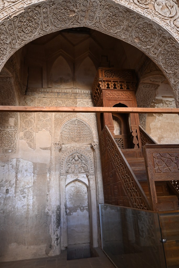 La mezquita es la más antigua que se conserva en Irán, del s. X, aunque las diferentes partes de la misma han sido construidas en diferentes épocas. En cualquier caso, la construcción sigue las mismas pautas de las mezquitas ya vistas con anterioridad, construcción típica de irán, con el portal y patio con los 4 iwans. La mezquita albergó una importante biblioteca, que fue quemada por miembros de la secta los Asesinos en el siglo XII. La mezquita es espectacular.