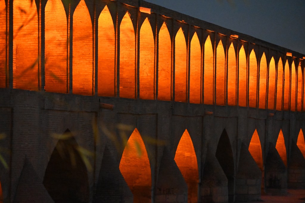 El primer puente que vemos es el puente Khaju, puente construido por el rey persa de la dinastía safávida shah Abbas II alrededor de 1650.