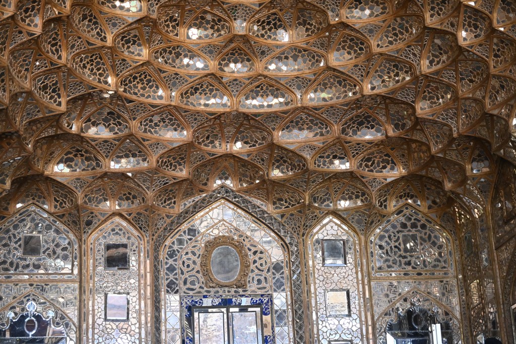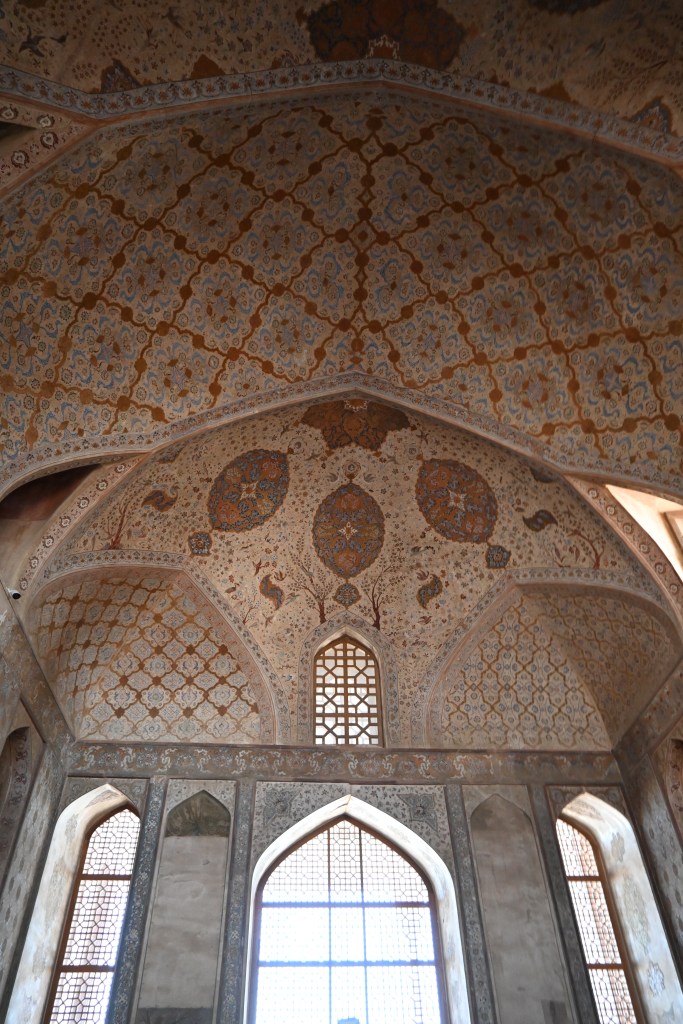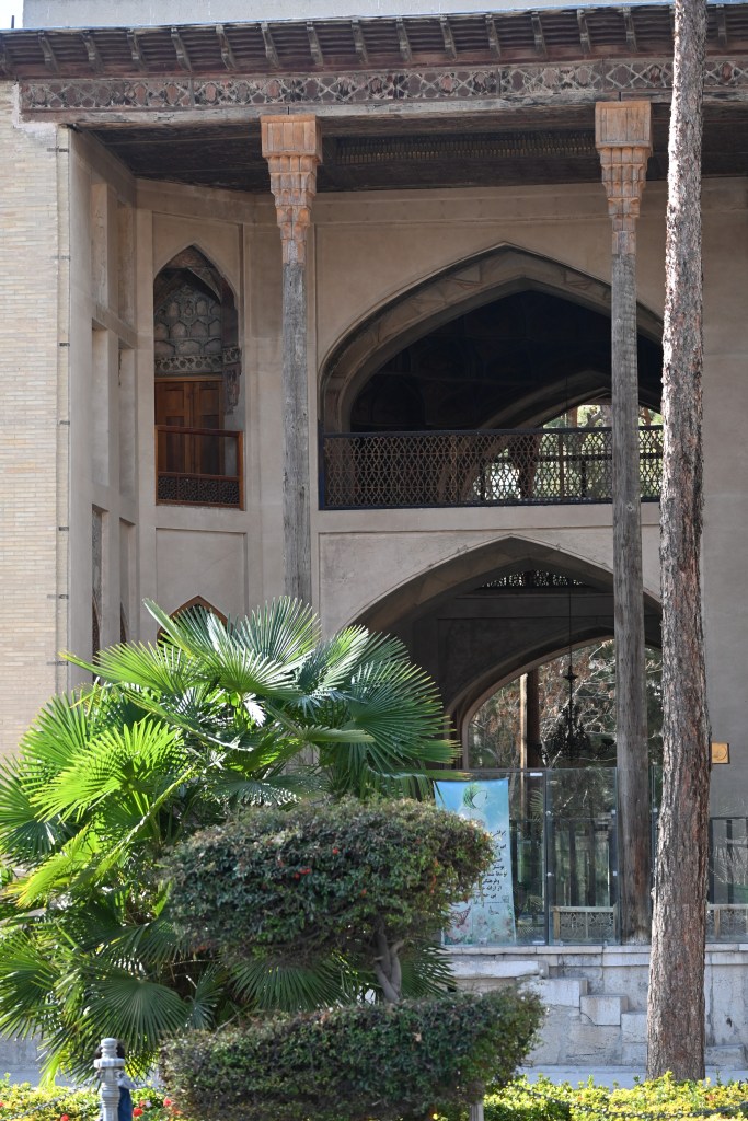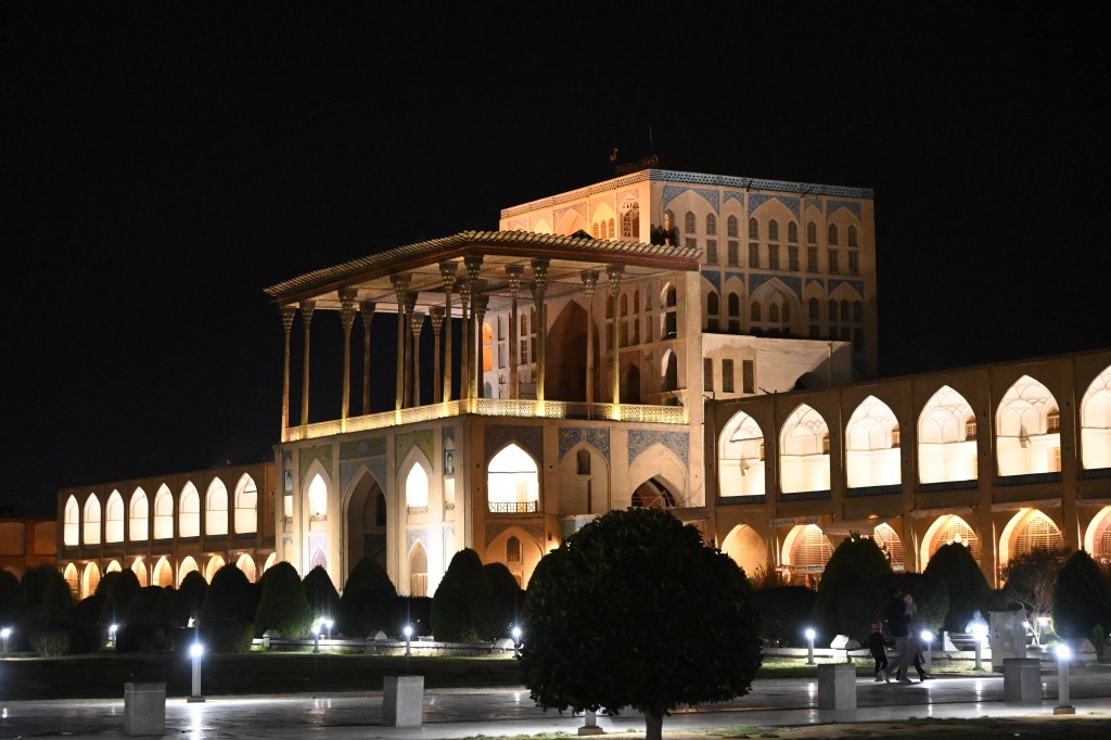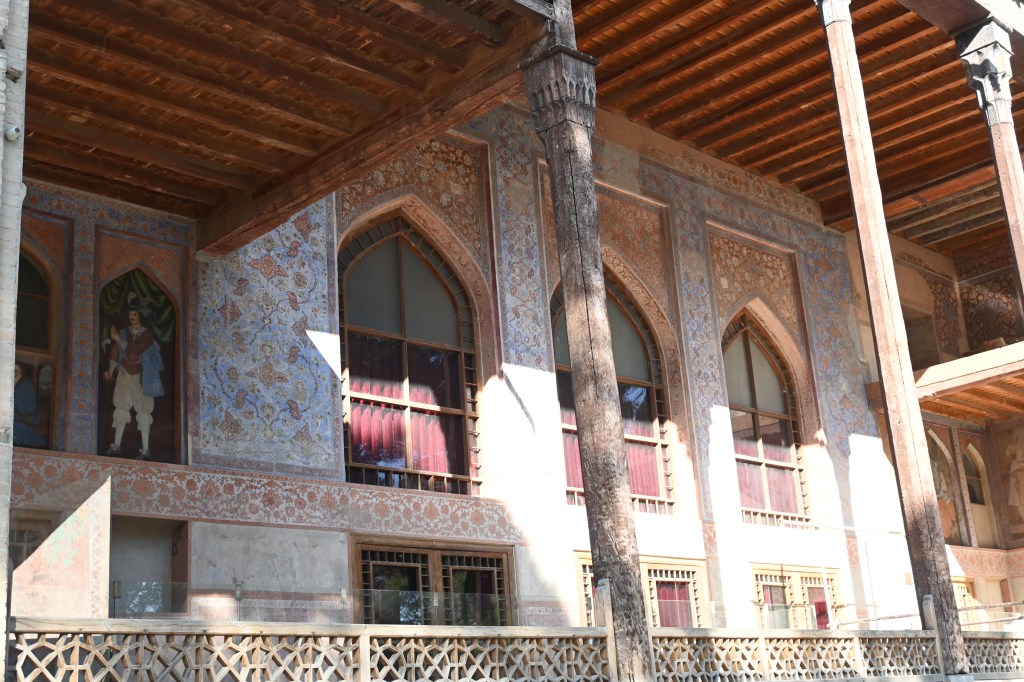 La siguiente visita, es el Palacio de Ali Qapu, también conocido como Kakh-e Ali Qapu, tiene cuarenta y ocho metros de altura y seis pisos accesibles con una escalera de caracol. Las escaleras están llenas de frescos y cada piso presenta una decoración diferente con pinturas y espejos. En el sexto piso se encuentra el “Salón de Música” donde hay profundos nichos circulares de valor acústico y estético.