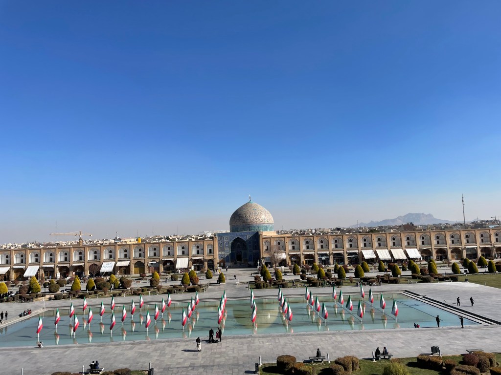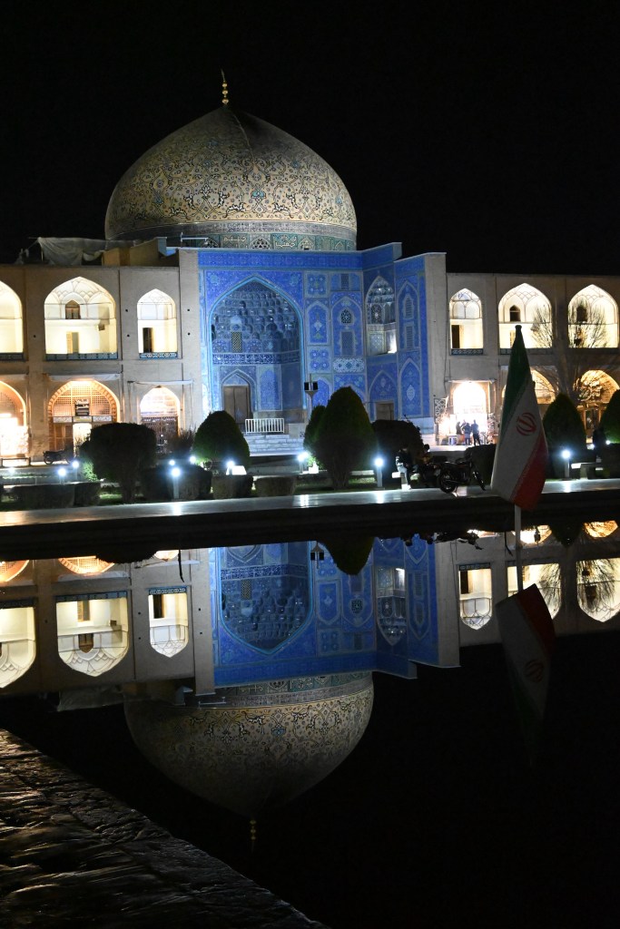Dejamos las maletas en el hotel Pirozi muy cerca del centro (15 minutos andando de la plaza máximo) Buena elección. Y salimos a visitar la famosa plaza del Imán Jomeini (Naqsh e Jahan) de noche. Brutal. 😍