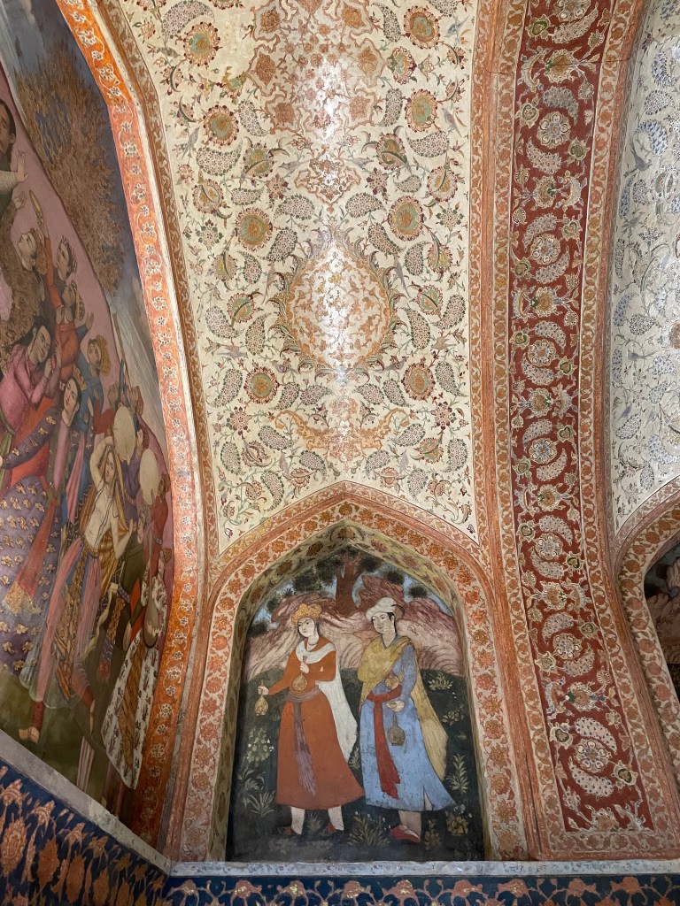 El palacio Hasht Behesht es un palacio de planta octogonal con dos pisos, construido en 1669 en tiempos de Suleiman. Esta decorado con frescos de pájaros y otros animales, la galería esta adornada con espejos, estalactitas y cerámica esmaltada. Increíble.
