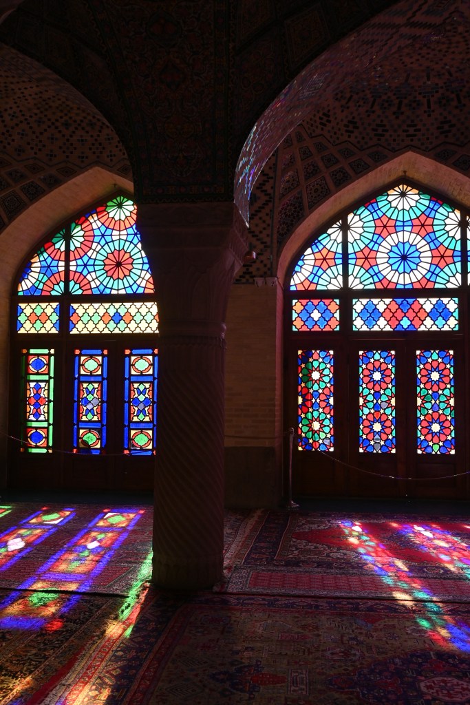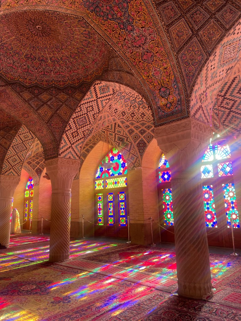 Lo primero que hacemos la mañana del último día es ir a la Mezquita Nasir ol Molk (mezquita Rosa). La mezquita abre a las 8:15 y Tenemos que llegar entre las 9-10 de la mañana que es cuando el sol pasa entre las vidrieras dejando en el interior unas imágenes increíbles. Nos ponemos un chador rosa con flores que nos mimetiza con las paredes de las mezquitas. Hay poca gente (pero más de lo que nos hemos encontrado en el resto de días del viaje) pero está claro que en época fuerte de turismo esto se debe poner como las ramblas (de Barcelona) 🤣