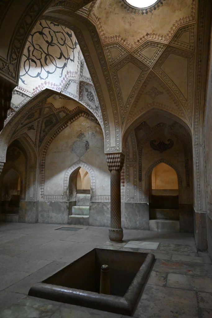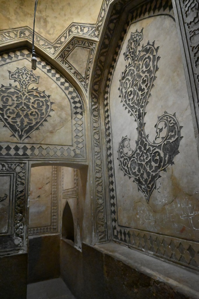 Dentro de la ciudadela, vemos un área con terrazas y habitaciones pintadas, parterres y fuentes. Hay terrazas en los lados norte, oeste y sur, que constan de seis habitaciones a ambos lados de las terrazas. Los jardines están llenos de naranjos, las fuentes sin agua. Vimos los baños (los que no vimos fueron los baños Vakil, porque el guía se lo saltó…en fin, bueno, se ve que son bastante parecidos)