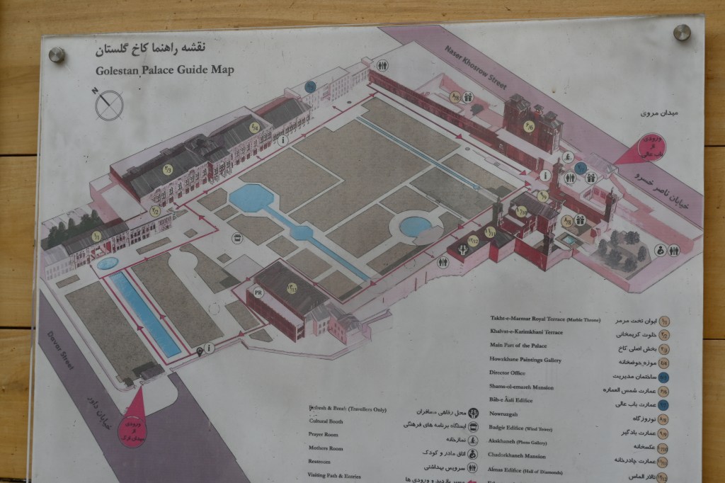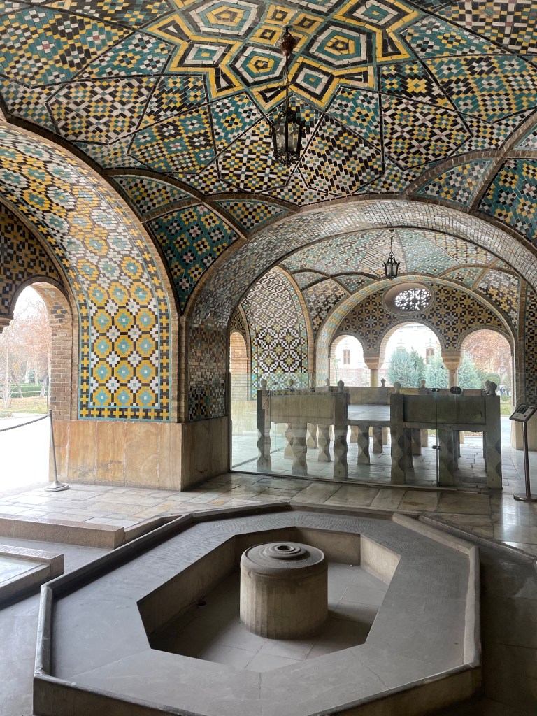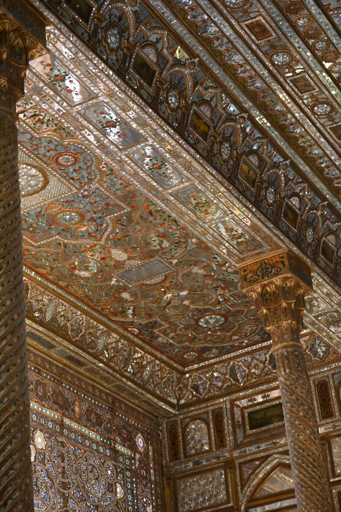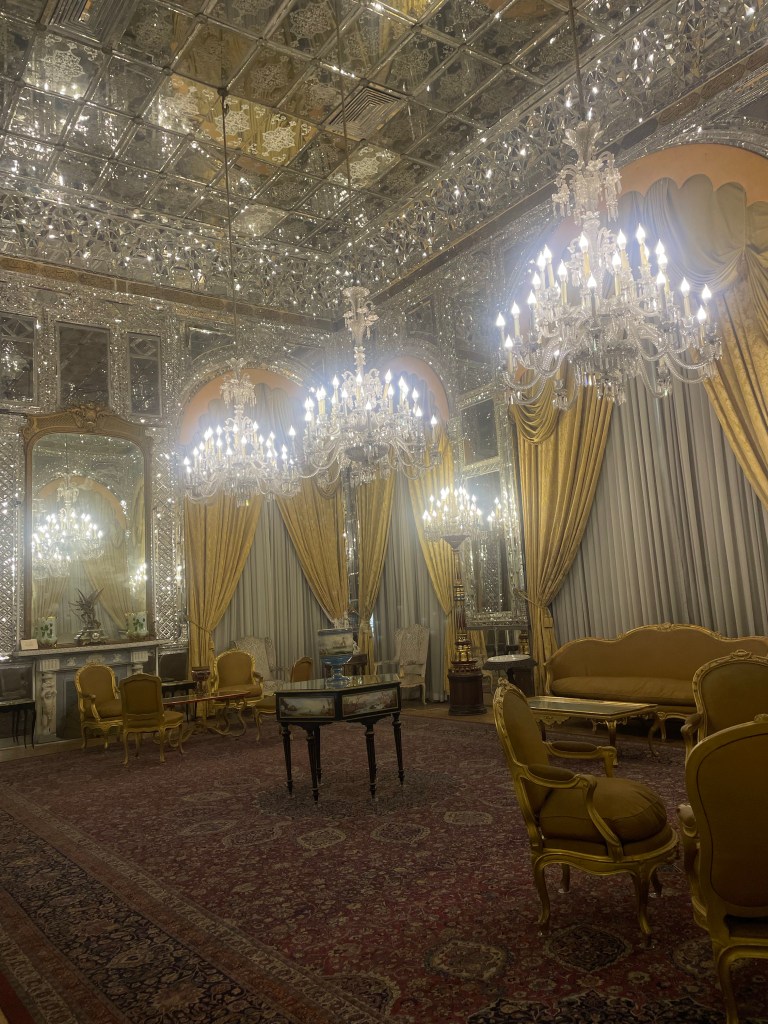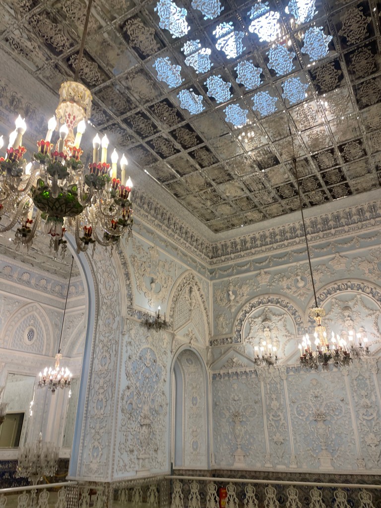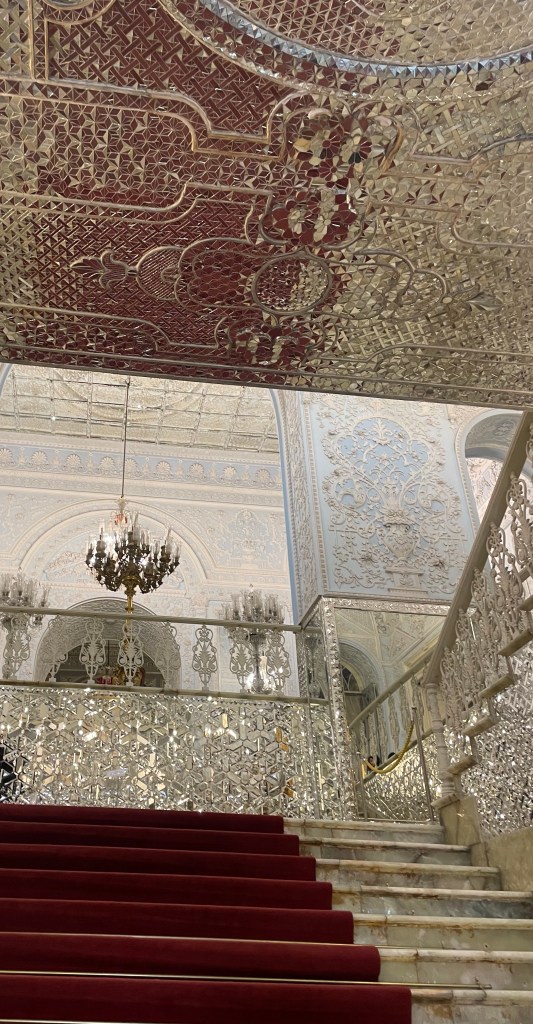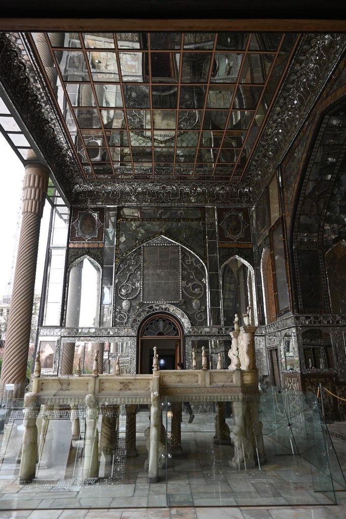 El Palacio de Golestán se compone de un gran parque con varios estanques, y una docena de edificios organizados a su alrededor…Vamos visitando los diferentes edificios y museos, las escaleras de mármol, las lámparas y espejos parece que te encuentres en San Petersburgo en uno de esos palacios increíbles.