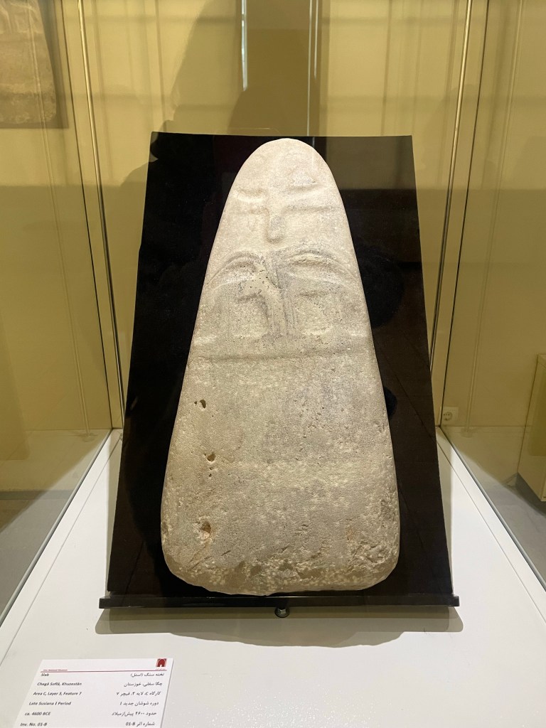 El museo está dividido en dos partes (dos edificios diferentes) uno presenta la historia antropológica y antigua de Irán, con colecciones que comienzan en el Paleolítico: los adornos, la arcilla y las figuras humanas y de animales de las primeras comunidades, evidencias de la escritura del cuarto milenio a. C., los relieves y capiteles de piedra de Persépolis, la estatua de bronce de tamaño natural parto del «Hombre Shami», la momia natural de un hombre llamado «Hombre de Sal»…