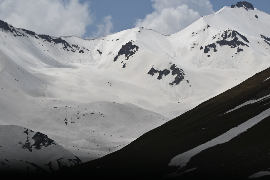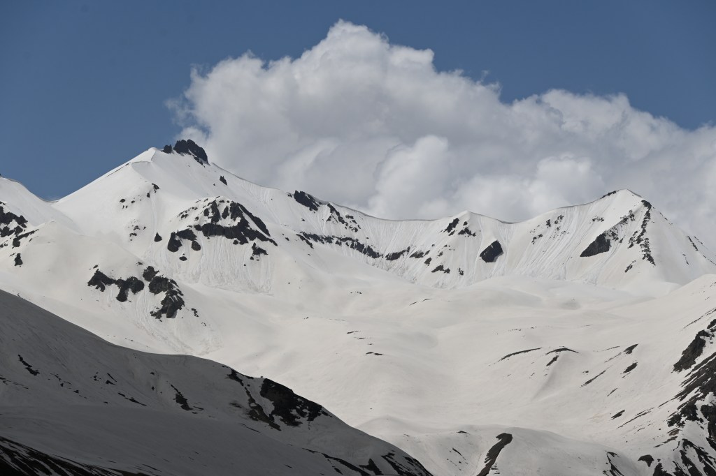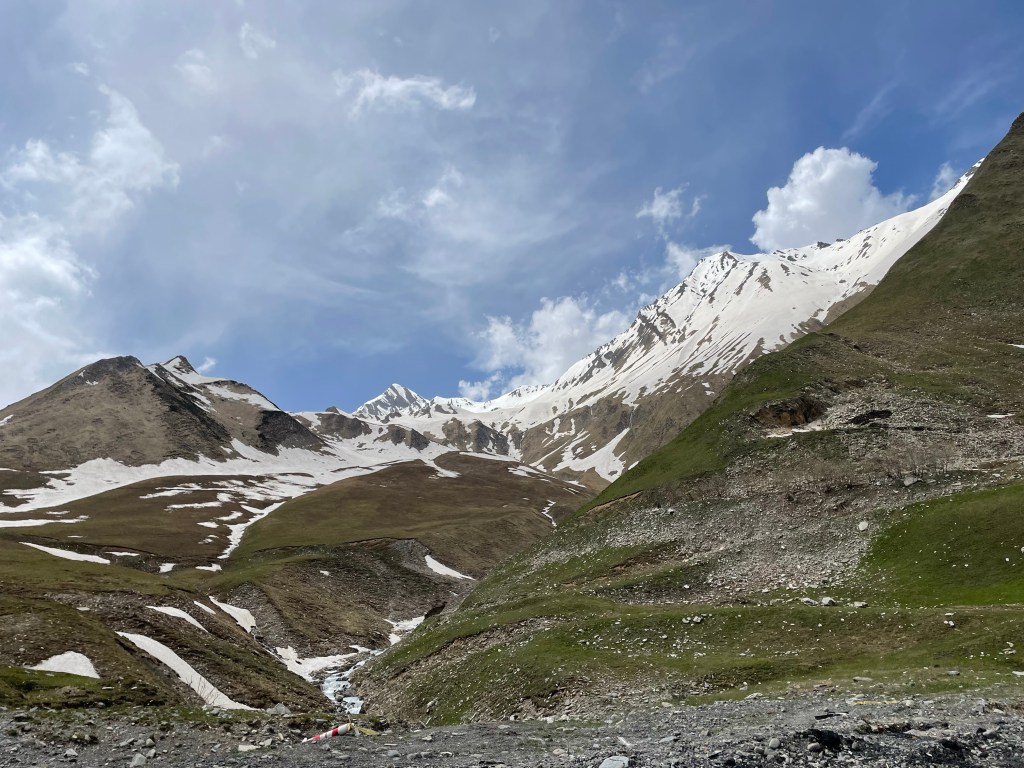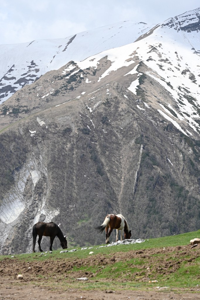 A medio camino nos encontramos con un pueblo famoso, Gudauri (una estación de esquí) el pueblo está en medio de la carretera, los hoteles (recién construidos o a medio construir) en las laderas de la montaña, una especie de Andorra la Vella o cualquiera de los pueblos de esquí de esa zona. Eso sí, turístico a más no poder.