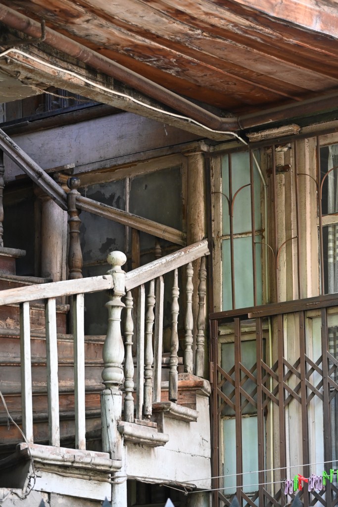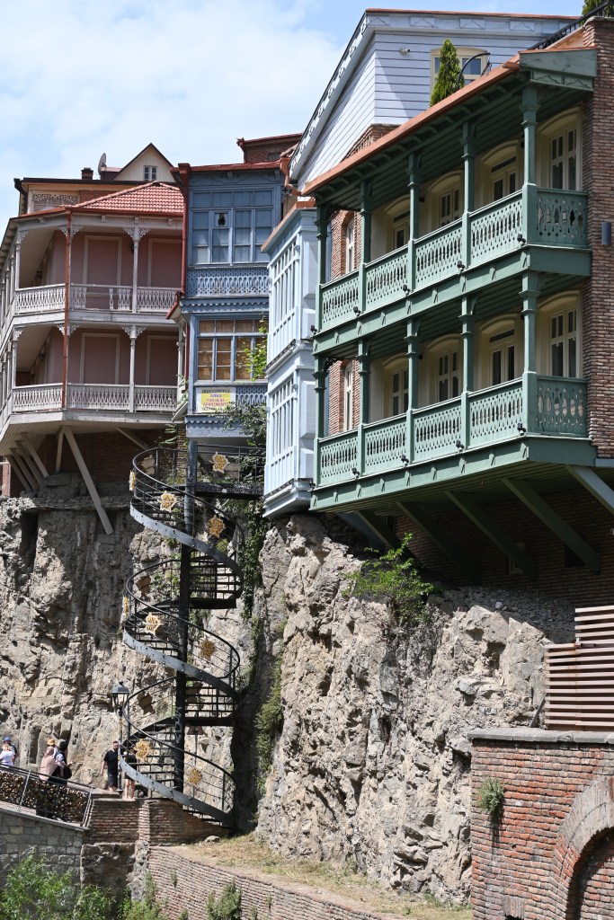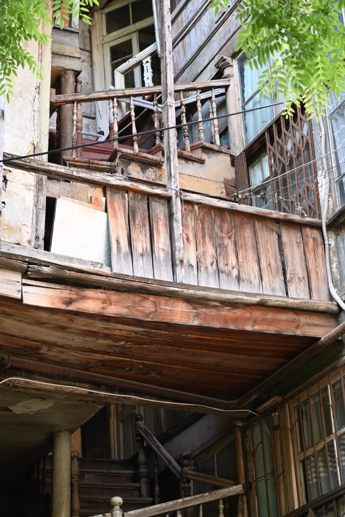 Empezamos la ruta desde el hotel. Atravesamos el viejo Tbilisi, con sus casas a punto derrumbarse, sus extraños pubs y hostels o pensiones en casas que parecen ocupadas, los patios de vecinos y los balcones, de madera o de hierro enteros o a punto del colapso. No hay dinero dice el guía.