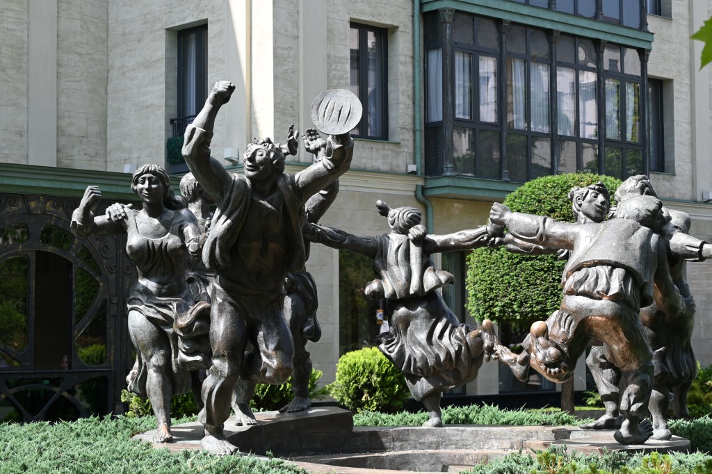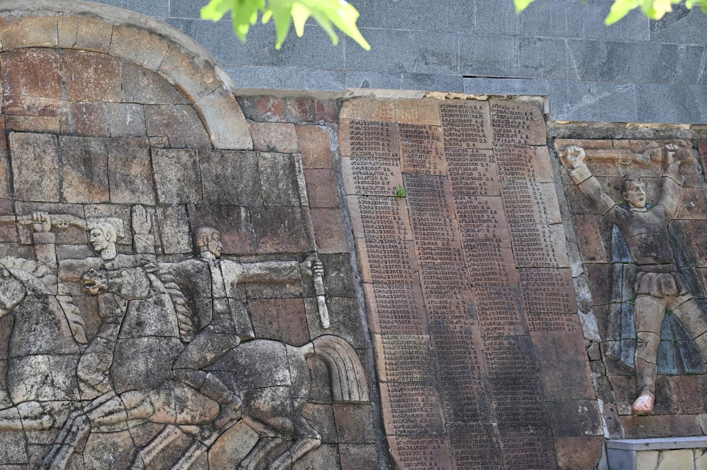 Atravesamos la ciudad casi por las mismas zonas que pasee el día anterior. Llegamos a la plaza Libertad donde está el ayuntamiento y la estatua de San Jorge y el dragón, desde aquí pasamos por toda la avenida Rustaveli y, a la altura de la Iglesia de Kashveti, atravesamos el parque 9 de abril, dirección al río que bordeamos por la calle Atoneli hasta llegar a la torre del reloj. En esta zona, la ciudad está llena de esculturas de bronce.