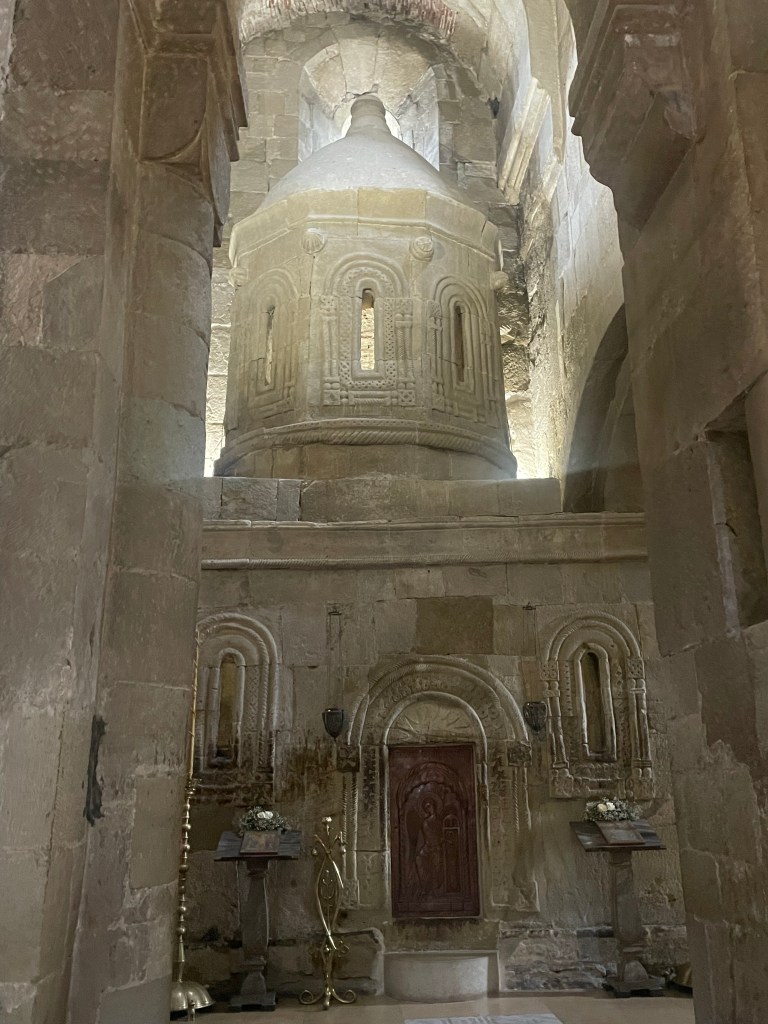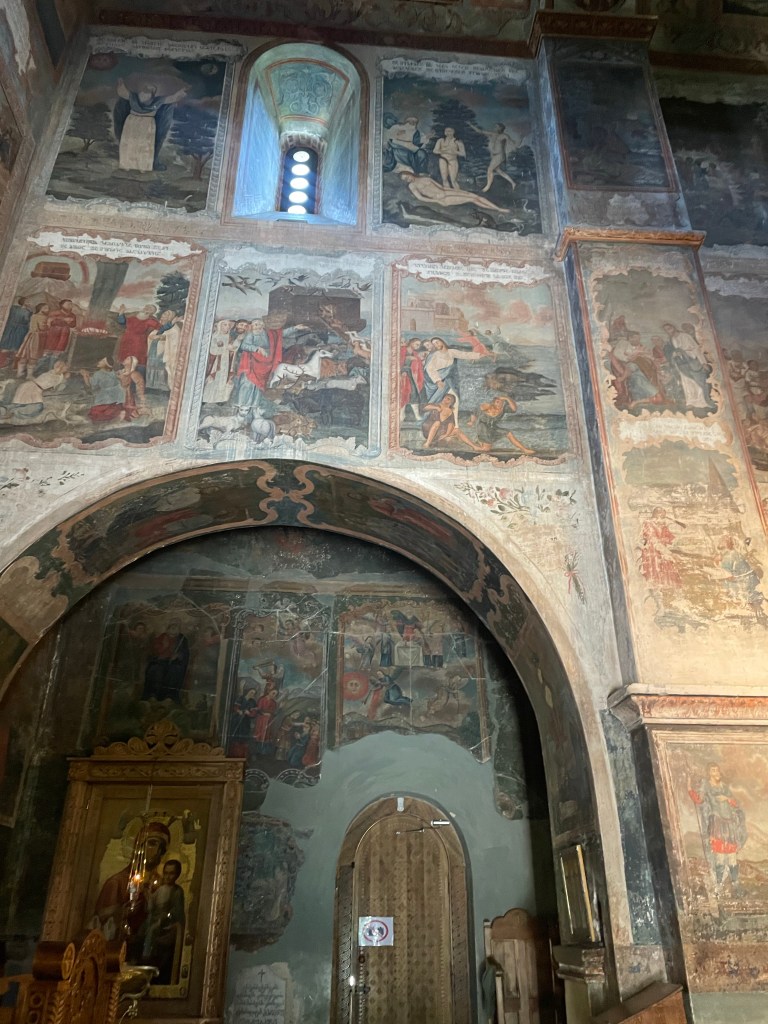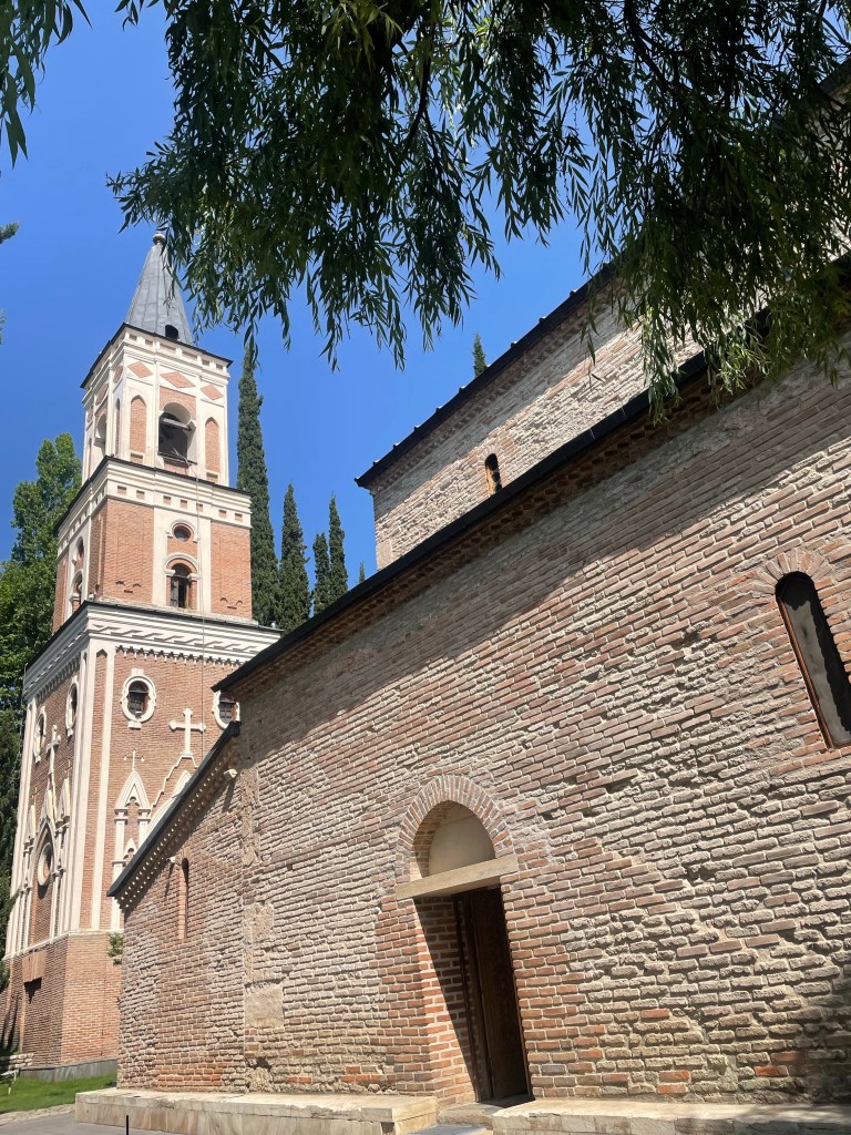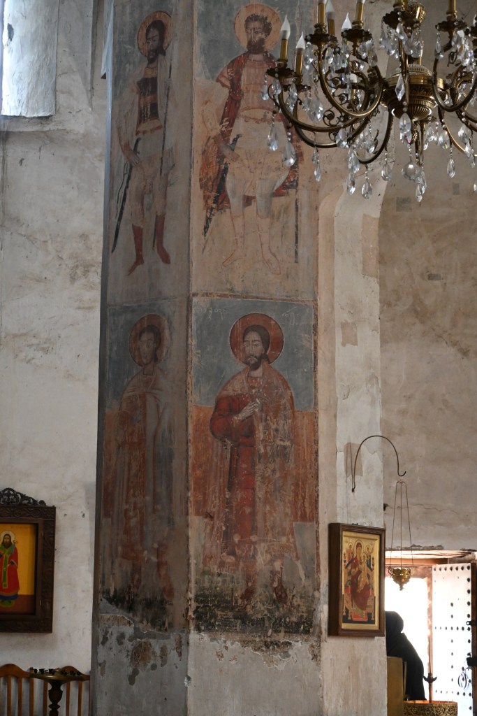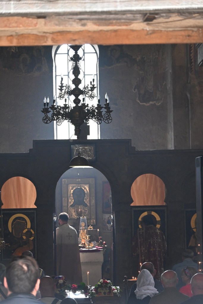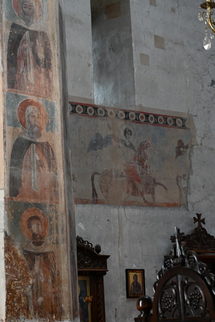 Visitamos Svetitskhoveli, una catedral que data del siglo XI. Hoy es uno de las más imponentes y extraordinarias de Georgia, con unos frescos maravillosos en sus muros. Es el segundo edificio de iglesia más grande de Georgia, después de la Catedral de la Santísima Trinidad de Tbilisi (la moderna) La catedral está en el interior de unas murallas. Fuera tienditas de recuerdos, cafeterías, tiendas de artesanía típica, heladerías…