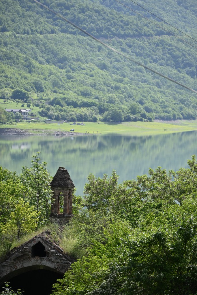 A orillas del embalse zhinvali en medio de un paisaje increíble, destaca la fortificación. Esta consta de dos castillos que se encuentran unidos por una muralla almenada. En su interior hay dos iglesias, la iglesia de la Asunción (Ghvtismshobeli), construida en 1689 tiene unos frescos espectaculares. El más increíble el juicio final (me pareció que tenía que ser un juicio final, abajo están las fotos) ❤️❤️