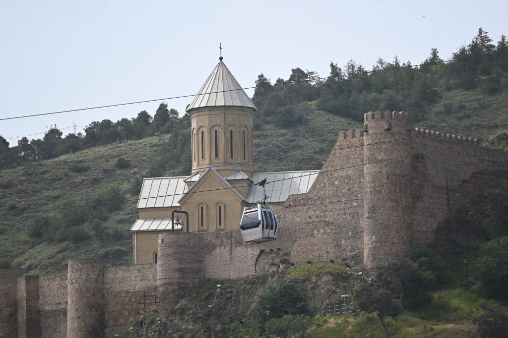 Casi al final del parque (donde llegue el día anterior) antes de llegar a la plaza de Europa hay un teleférico con el que subimos hasta la Fortaleza Narikala. El precio de un viaje (ida) es de 2 GEL.