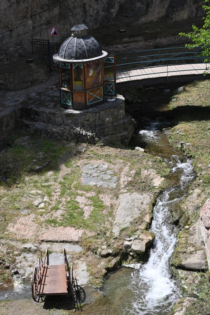 Llegamos al distrito «Abanotubani» donde hay toda una calle (Abanos kucha) de baños públicos que utilizan las aguas sulfurosas de las muchas pozas de aguas termales de esta zona. Abanotubani es el lugar donde, según la leyenda, cayó el halcón del rey Vakhtang Gorgasali. Las casas de baños se encuentran por debajo del nivel del suelo por fuera se ven las cúpulas/domos restaurados.