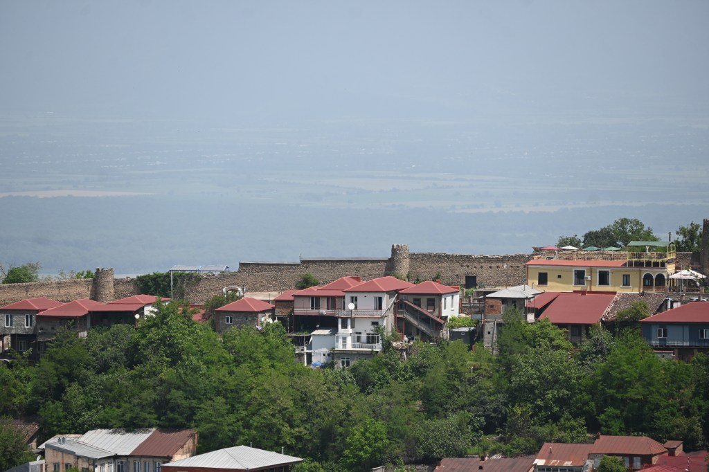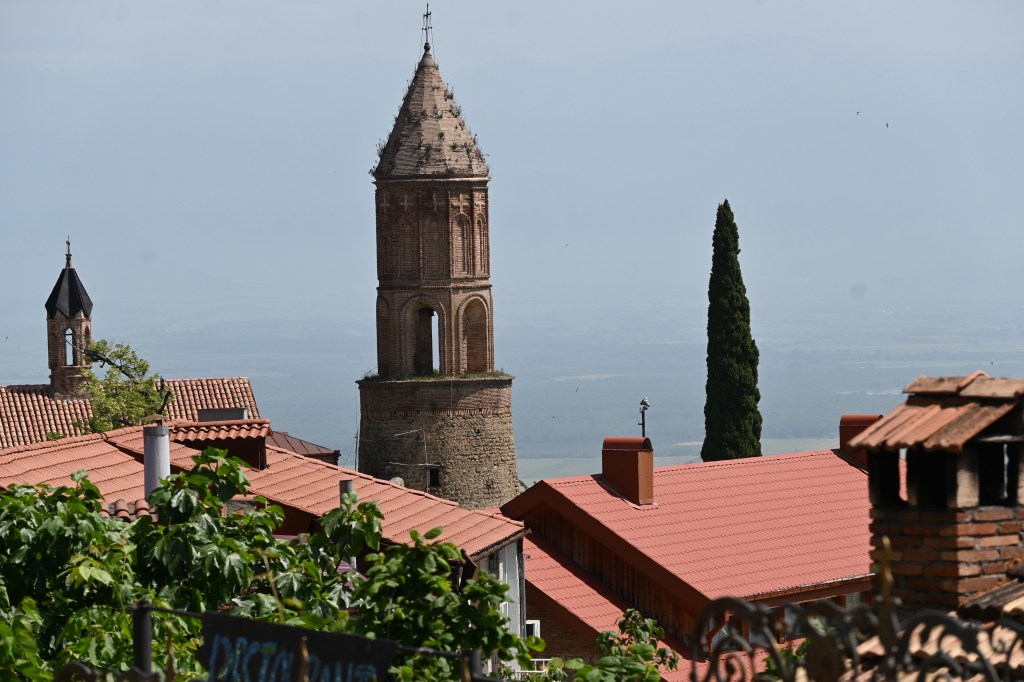 Unos diez minutos después, llegamos a Signaghi. Eje central para comerciantes y artesanos. Hoy en día, Signaghi es el lugar favorito de los turistas, ya que pueden, no sólo visitar la ciudad y hacer excursiones por el Valle de Alazani, sino que además como es un poco la “Toscana” georgiana pueden hacer visitas a viñedos y bodegas, que te ofrecen, además de la visita, degustación de los vinos y licores de la zona.