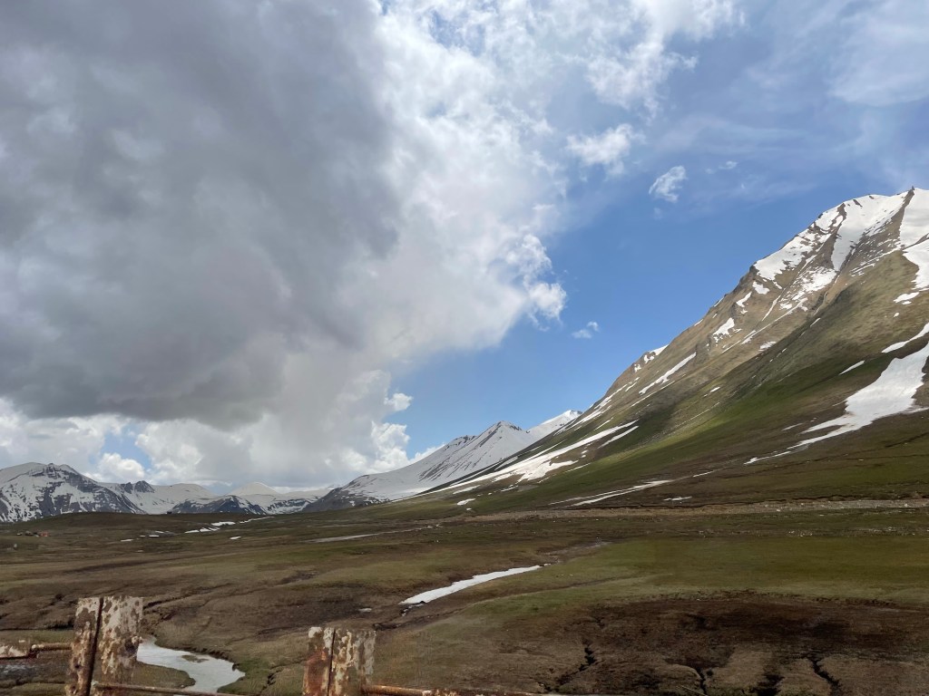 Continuamos la ruta por la carretera que lleva a la frontera con Rusia, nos estamos acercando al Cáucaso por una increíble carretera de montaña. Camiones y camiones atascados en el arcén en colas larguísimas para pasar la frontera. El paisaje alucinante. La carretera militar georgiana es el nombre histórico de la ruta principal entre las ciudades de Vladikavkaz (Osetia del Norte, Rusia) y Tiflis(Georgia). Tiene una longitud de 208 km.