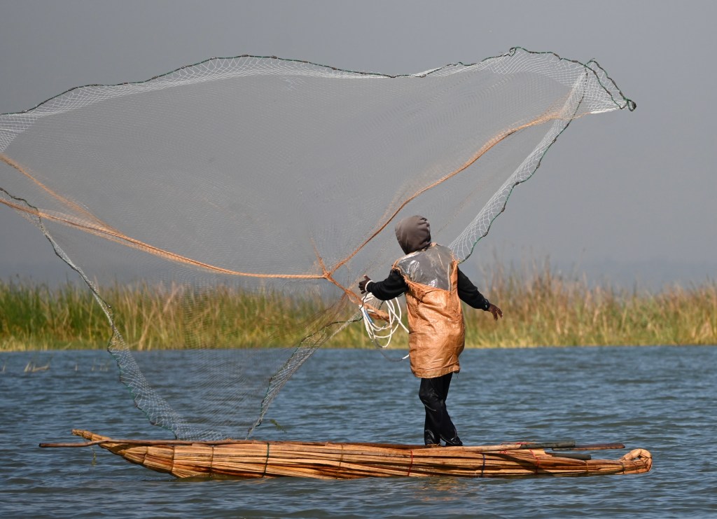No muy lejos de los hipopótamos nos cruzamos con un pescador en un tankwa , las canoas de papiro que se usan desde el siglo IX a.C. Lo vemos vestido con una especie de bolsa, tirar la red una y otra vez haciendo equilibrios en la inestable canoa que hace aguas por todas partes. Pero las apariencias engañan. Al final de la jornada, el pescador dejará su tankwa secarse al sol. Así logran conservarlos, según el guía, entre uno y dos meses, aunque, sinceramente, no parece que les vaya a durar más de una semana… Construir uno nuevo, con las raíces de papiro que crecen a lo largo de la orilla, les lleva solo unas horas..