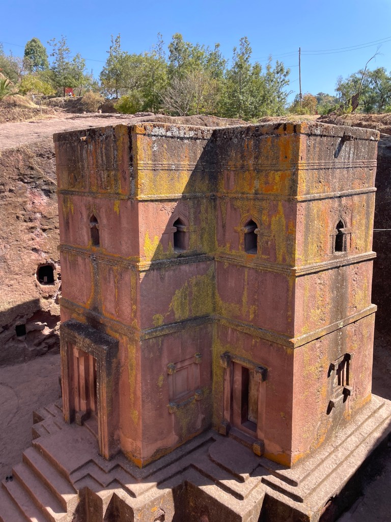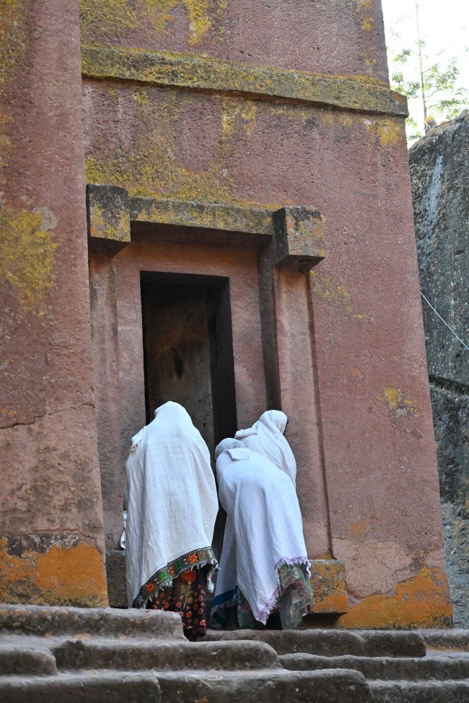 Imprescindible ir al atardecer a la iglesia de San Jorge (Bete Giyorgis) Cierran hacia las 17:30-18h así que es perfecto. En teoría se debe poder visitar las iglesias de madrugada porque hay gente rezando con velas pero es difícil colocar está visita extra al guía, a nosotros no nos quiso llevar antes de amanecer, porque era trabajo extra para el chofer. En cualquier caso, como hubo intercambio de disparos en el pueblo entre los militares y las milicias esa misma noche, pues llegamos a la iglesia una vez acabado el toque de queda. Es decir hacia las 8.
