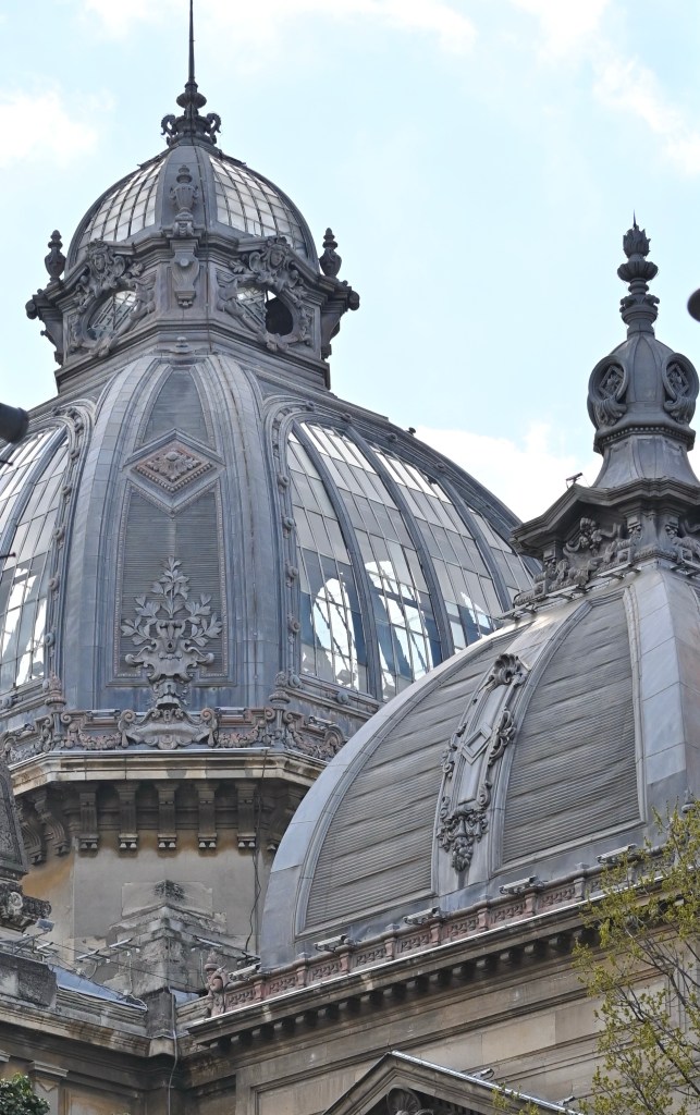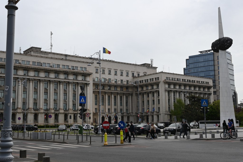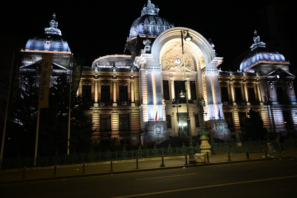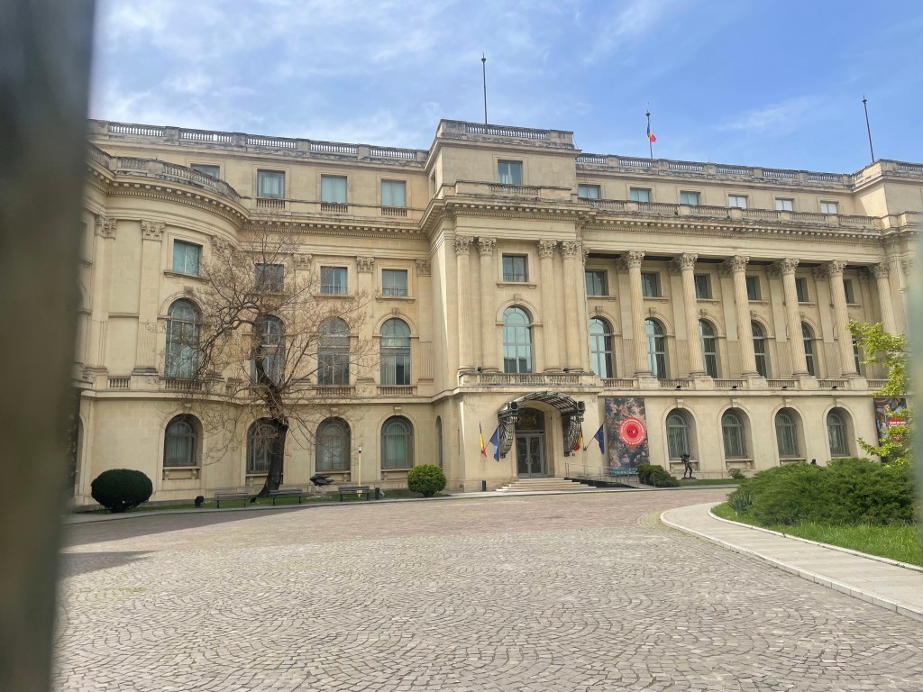 Frente al museo el edificio del Banco Nacional de ahorros: El Palacio CEC, construido en 1900 en estilo Beaux-arts , el palacio está coronado con una cúpula de cristal y metal, hoy en día está cerrado y es propiedad de Bucarest.