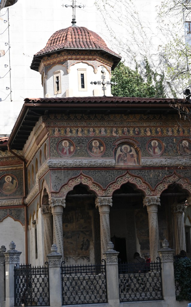 Muy cerca del museo, a menos de cinco minutos andando, se encuentra un pequeño monasterio que tiene una iglesia. El monasterio Stavropoleos pertenece a la época de Brancovan. La iglesia es de tradición bizantina. Tiene frescos tanto en el interior como en el exterior (porche)