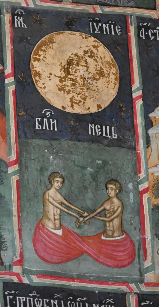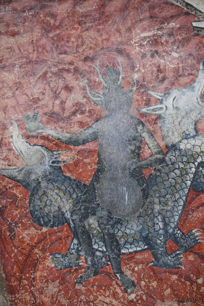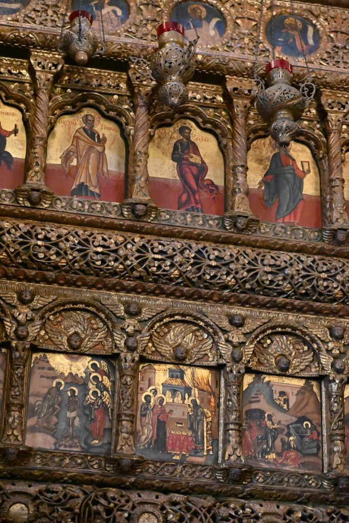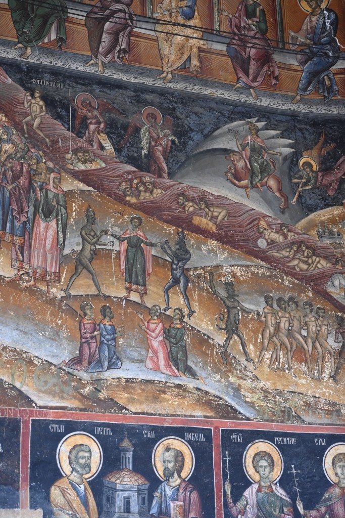 Hay acontecimientos religiosos que se reproducen en todos los monasterios. Pero todas las iglesias son diferentes. El juicio final, el río de lava, el demonio sobre un dragón, los signos del zodíaco, los justos, los pecadores, que todas son diferentes lo dice el guía…