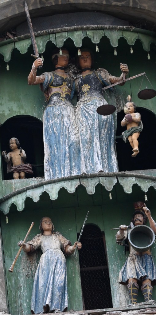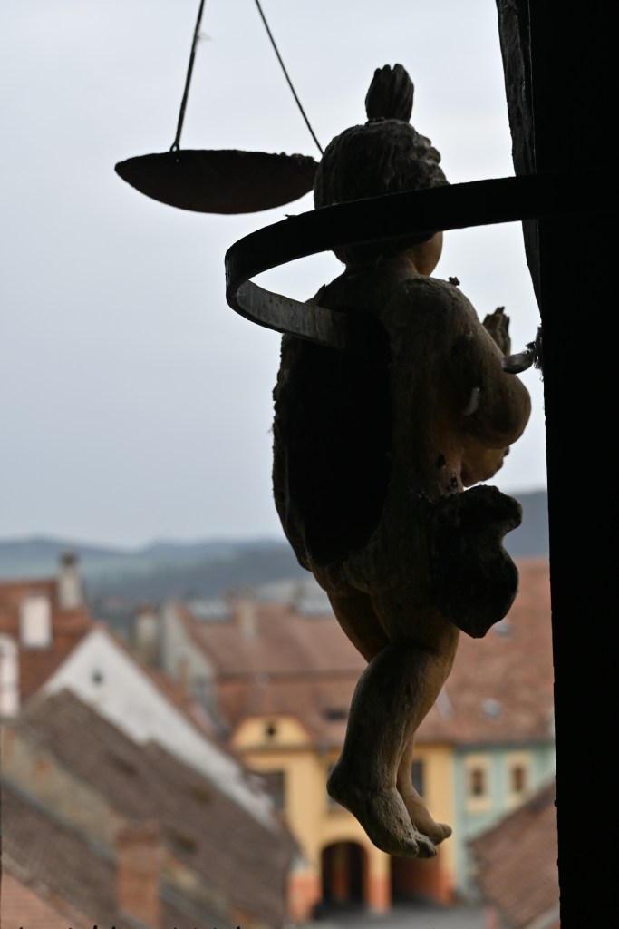 Las cuatro torretas que rodean la el pico principal de la torre son un símbolo del »Jus Gladii»’ que se encuentra también en la Torre del Reloj de Sighisoara. El »Jus Gladii» era un privilegio otorgado a determinadas ciudads en Transilvania mediaval que concedía a la nobleza local el derecho de vida o de muerte en su ciudad..