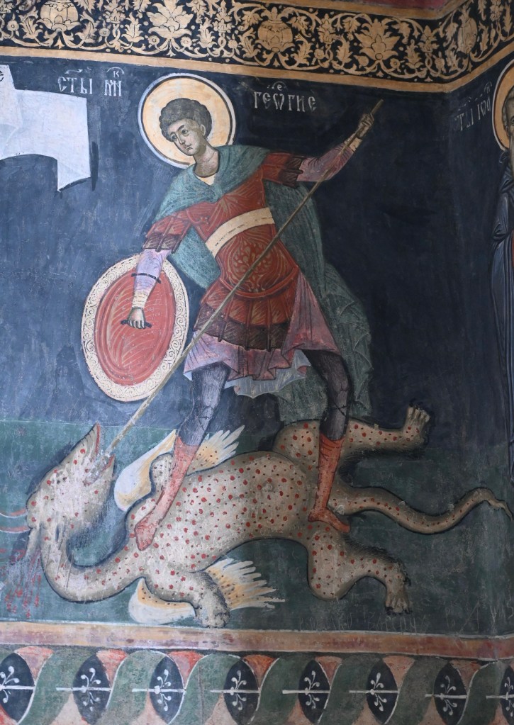 Los frescos de la nave y del Altar, son del S. XVIII. Sus frescos en el porche son del siglo XIV y son algunos de los más antiguos que aún se conservan en Rumanía.