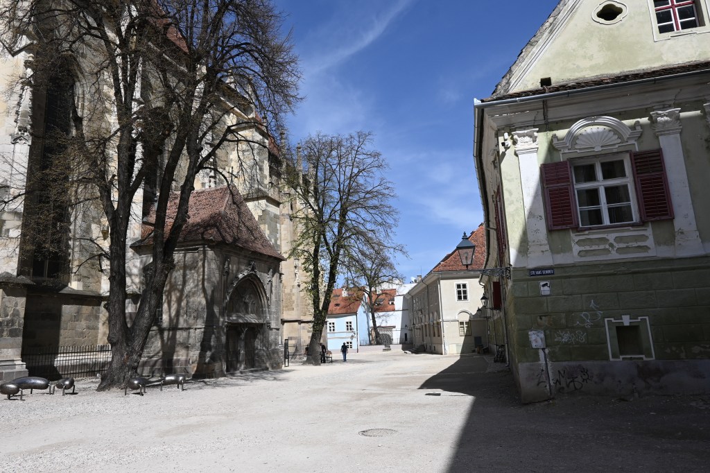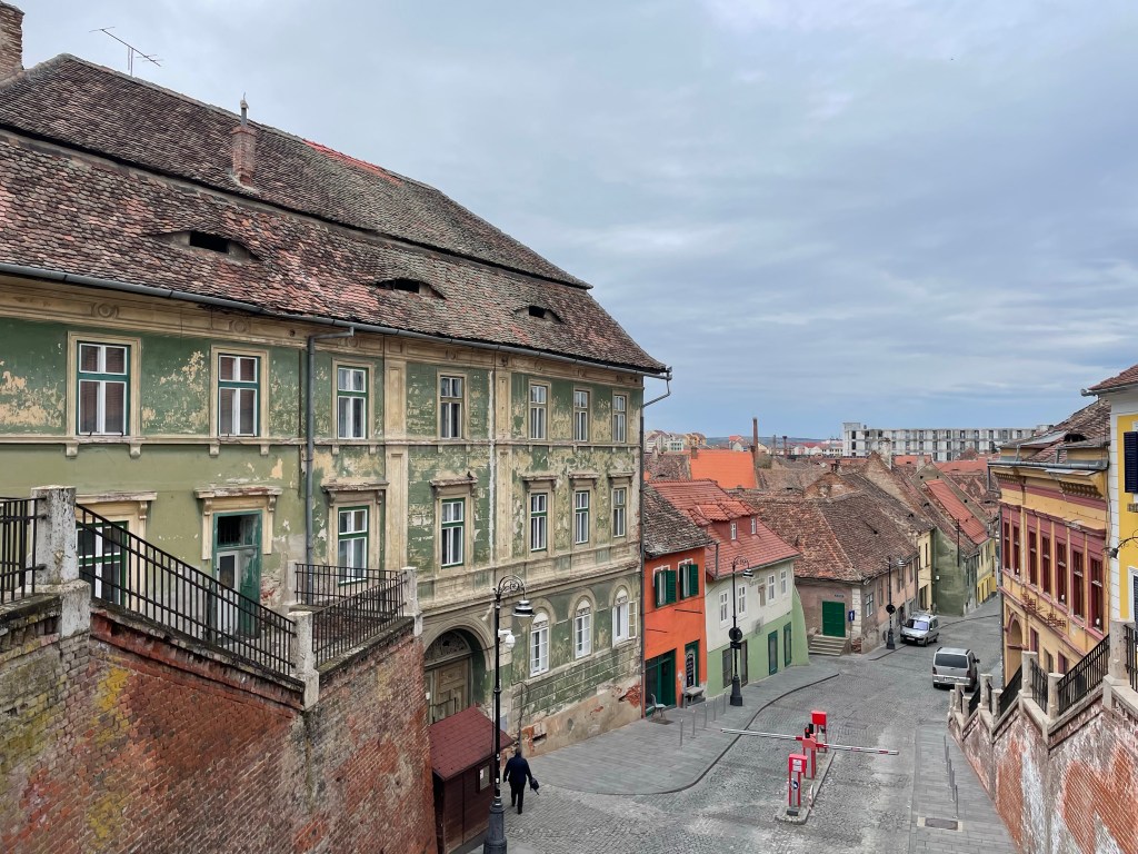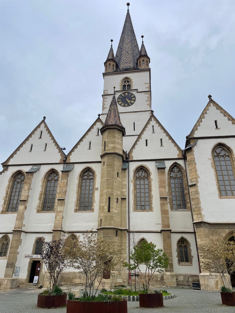 Vemos la plaza grande del mercado (Piața Mare), la plaza pequeña con el puente de las mentiras, más plazas, la iglesia gótica del siglo XIV. En fin las iglesias muy reformadas tanto la católica que visitamos como la ortodoxa.