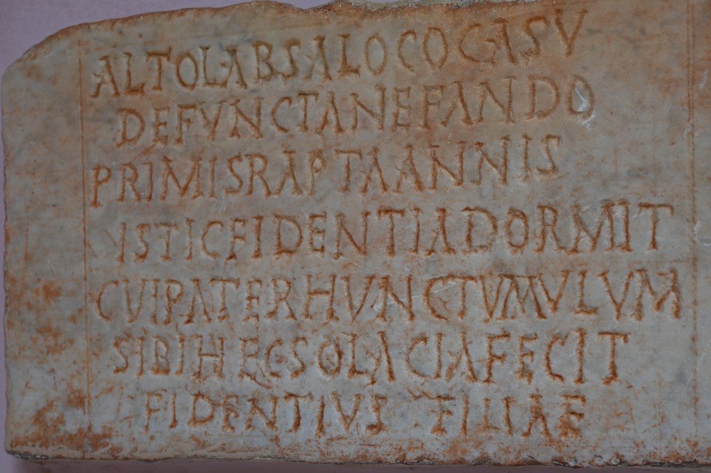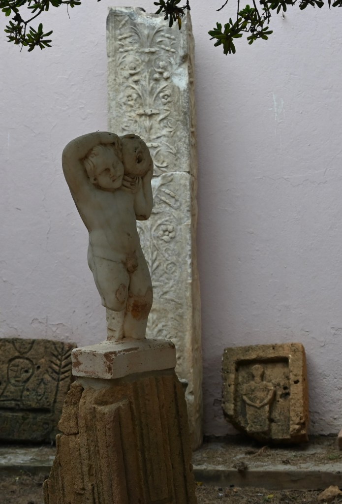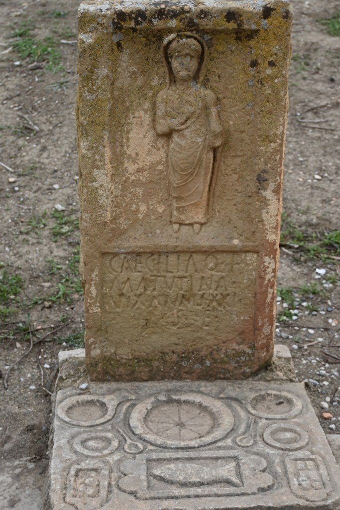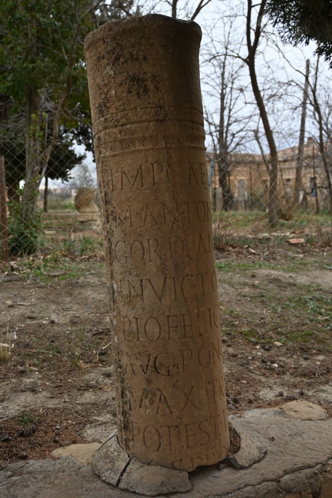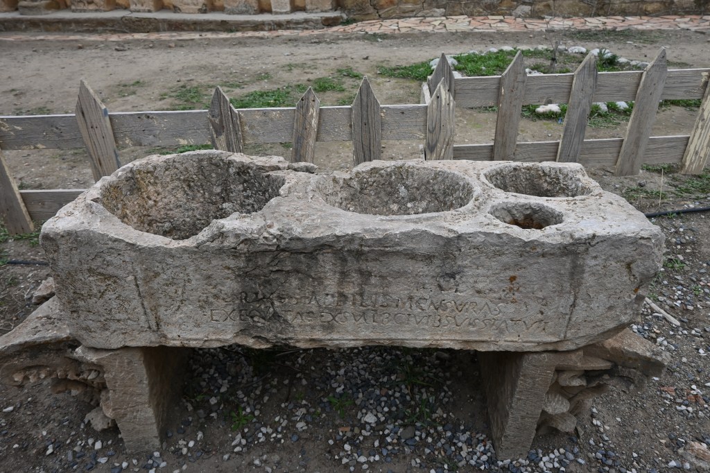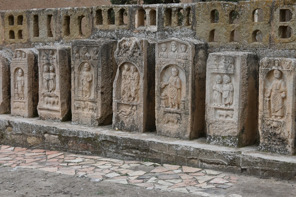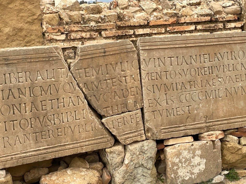 En el patio del museo y a ambos lados de la avenida principal que lleva hasta una de las « puertas de entrada » a las ruinas, vemos estelas funerarias, miliarios y alguna mensa ponderaria.