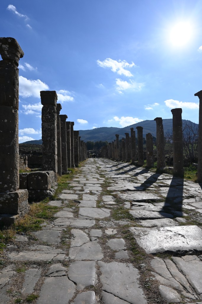 Desde la plaza se puede ver el cardo máximo y su prolongación que atraviesa toda la ciudad.