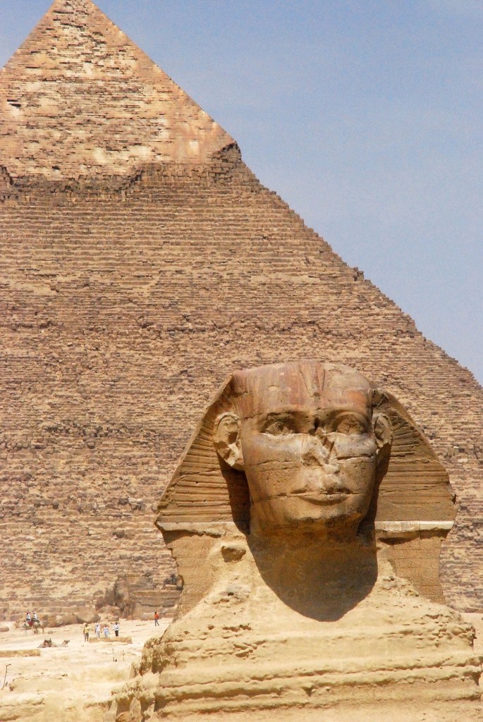 Las estatuas colosales son uno de los sellos distintivos de la antigua civilización egipcia, y la Gran Esfinge de Giza es la más famosa. Fue tallada directamente de la roca durante la cuarta dinastía (c.2613-2494 a.C.), lo que también lo convierte en la más antigua. Las antiguas esfinges egipcias representaban al rey con el cuerpo de un león, en una clara demostración de su poder.