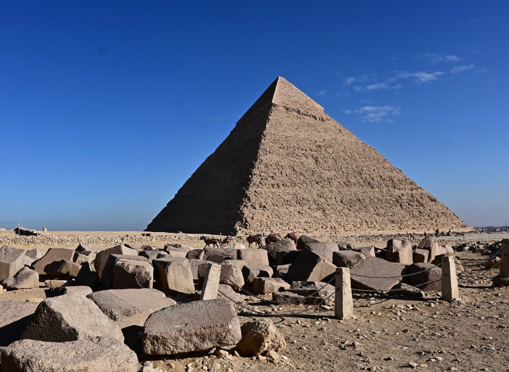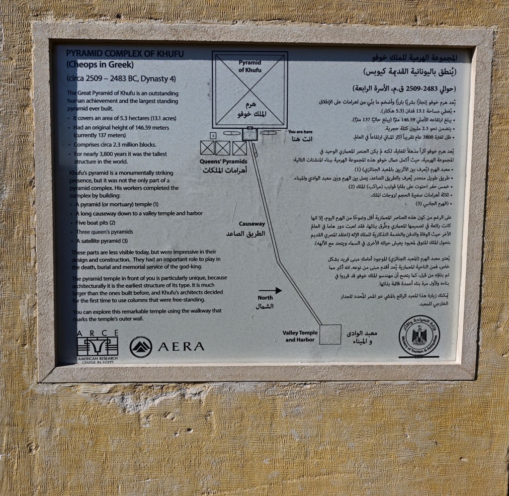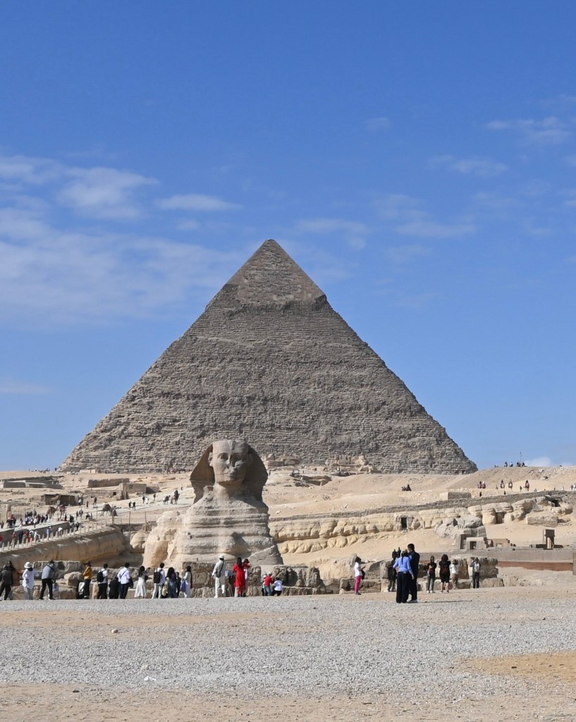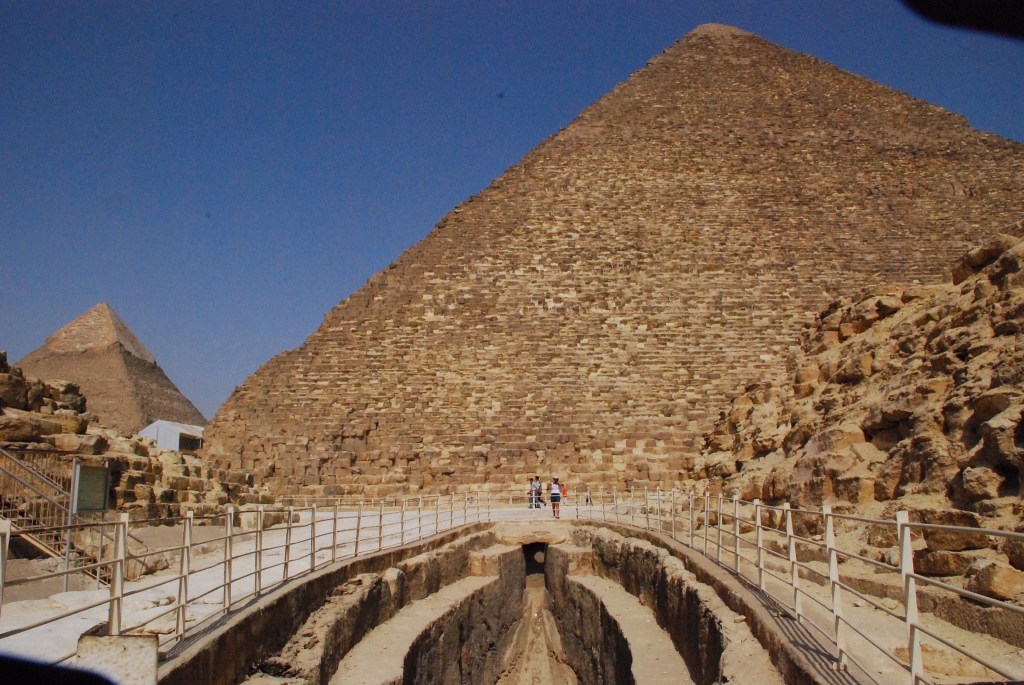 La Gran Pirámide, es decir, la tumba del rey Khufu (c.2589–2566 a.C.), con sus 146,5 metros, fue la estructura más alta del mundo durante 3.800 años. Se estima que tardó entre 10 y 20 años en construirse y no fue para que tú, Mari Carmen, te subas arriba para hacerte un selfie. Atención con las tonterías que en Egipto te detienen por hacer estas cosas.