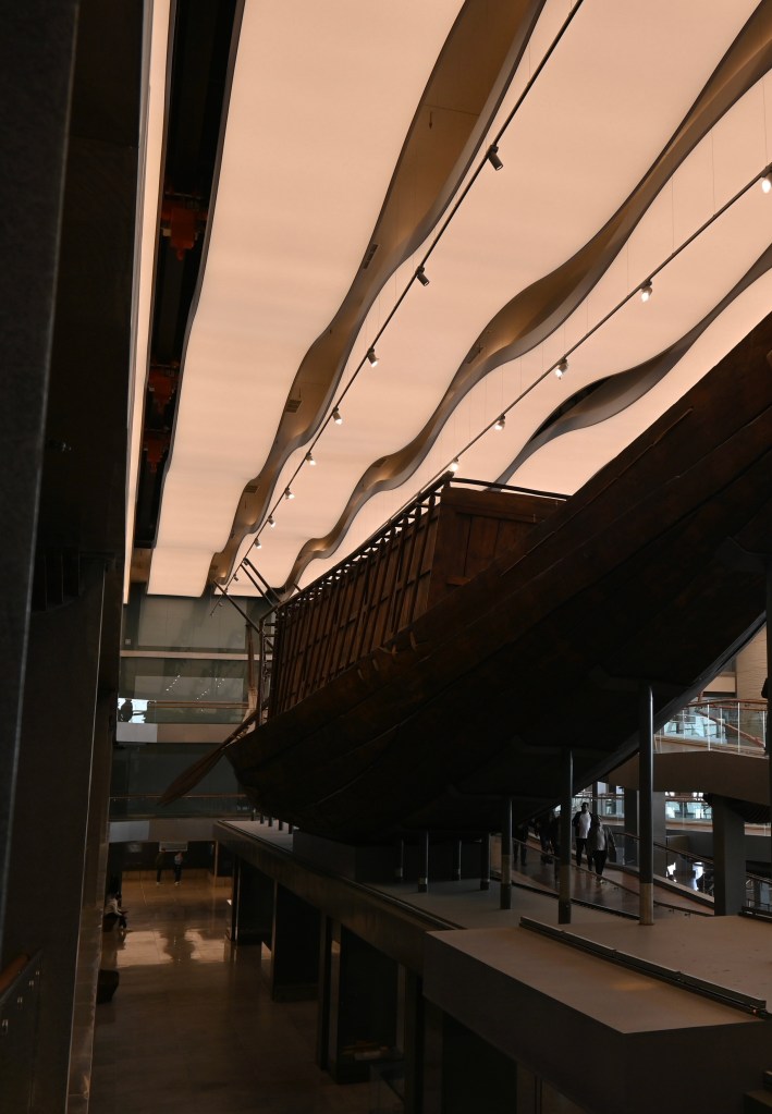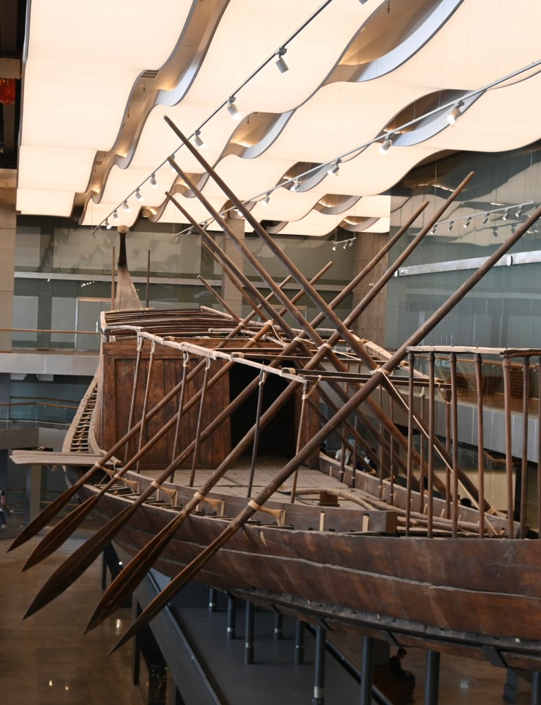 En la foto de abajo los barcos en el Gran Museo Egipcio.