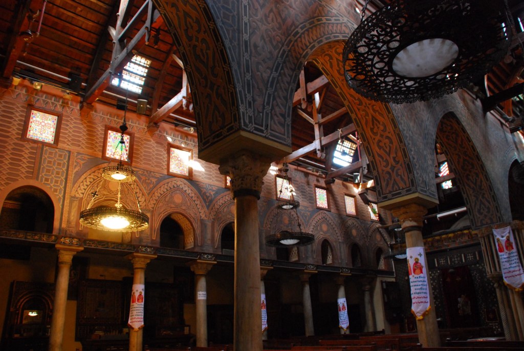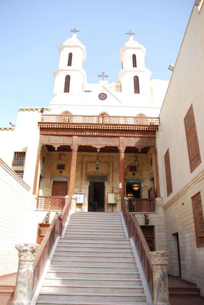 La iglesia de Santa María la Virgen, más conocida como “la iglesia colgante de El Cairo” por estar construida sobre una de las antiguas puertas de la Fortaleza de Babilonia.